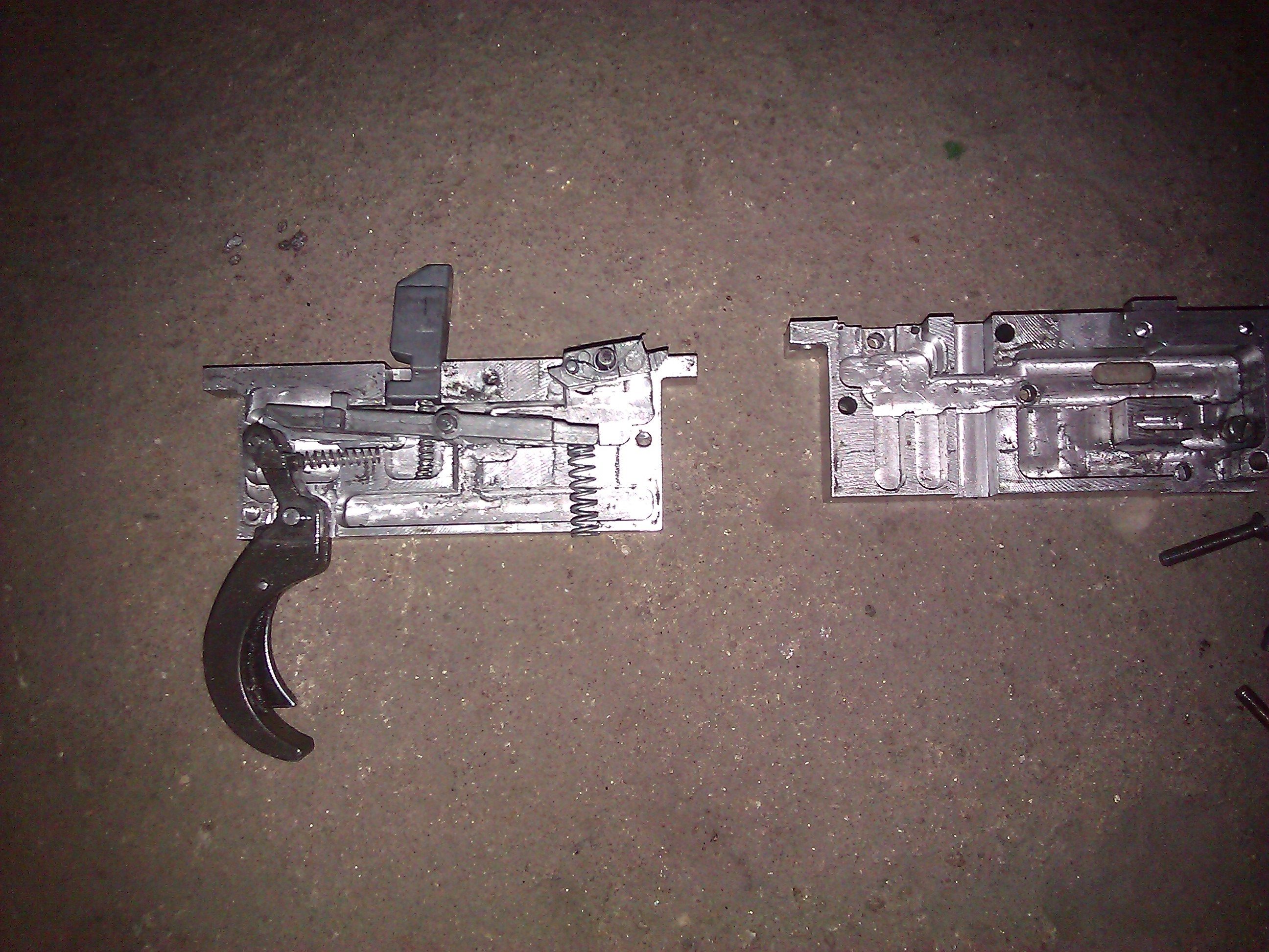 Dobrý den. Před lety jsem koupil L96 od Wellu (MB01) za 1500. Zbraň celá v základu. Po projetí pár forek a shopu s ruzným upgradem a homemade vylepšením jsem se rozhodnul po dlouhé době také s tím něco udělat a pomalu vylepšit svou L96 co nejvíce to půjde. Začal jsem se spoušťovým mechanismem který je základ zbraně. Držel jsem různe verze spoušťového mechanismu od nejlevnějšího (Well), airosft pro až po PDI. Po prozkoumání jsem kontaktoval jednoho pána, který mi vyrobil spoušťový mechanismus podle původního plastového, ale oproti toho od firmy Well ze slitiny, z lepšího materiálu (pevnější) a s větší tloušťkou stěn. Šlo hlavně o to aby se mechanismus nerozletěl, aby měl zajištění proti výstřelení jako realné střelné zbraně a za rozumné peníze. Pán měl do týdne vše hotové a ihned jsem šel zkoušet. Vystřelil jsem přes 1000 ran ( trenink, airsoft akce atd.) a mechanismus beze změn ( opotřebení). Vnitřek mechanismu je ze základu, ale už mám vyrobené díly pro změnu za původní z kvalitního materiálu, jenom čekám až se původní rozletí. Po spoušťáku přišel na řadu píst, trn a pružina. Opět vyrobené tím pánem a cena okolo 400 kč. Kvalita parádní a zatím žádně známky opotřebení. Pružinu jsem si koupil od airsoft pro (170). Budu si kupovat 100 % dražší pružinu a kvalitnější protože tato pružina je otřes co se týče natahování. Měl jsem půjčenou pružinu od kamaráda M190, pravda ta se natahovala velice těžce ale bylo to jenom kvůli vyzkoušení co všechno vyrobené díly vydrží. Zatím žádna změna. Vše šlape jak má. Nyní pracuji na hop up komoře. jsem zvědav jak to dopadne. Určitě sem hodím fotografie Hopu. Jediné co si budu kupovat od firem je Válec a hlavu válce. V plánu je překopat celou zbraň od dílu až po estetiku. Budu sem dávat fotografie a postřehy co zachytím. Díly které zde jsou vyrobené není problem vyrobit znovu pro vás jestli máte zájem. Přivítam rady a spolupráci. Jestli máte nápad jak zlepšit díly popřípadě vaše vlastní návrhy tak sem s tím :) jo a Spoušťak jde vyrobit i bez otvoru pro zajišťění jestli má někdo strach s prasknutím, ale to je zbytečné.