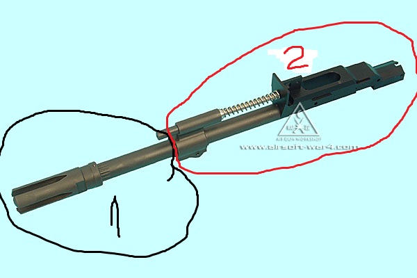 Ještě dotaz...dá se nějak oddělit vnější(1) hlaveň od té vnitřní hlavně(2)? Přikládám obrázek(není to SRC). A nebo mosazná vnitřní hlaveň vede až dovnitř do části 1? Promiňte za tak pitomé otázky ale nemám to Kčko doma.