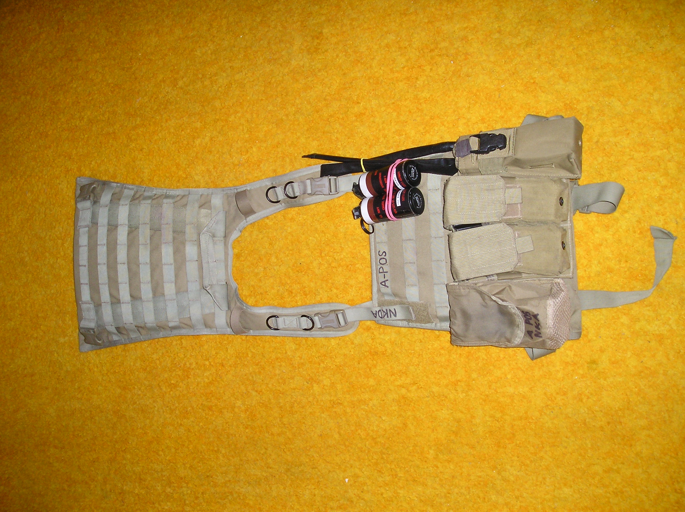 Koukám že to taháš na základních popruzích. Doporučím ti spíš než bib sehnat x-harness, vesta je pak ještě pohodlnější  . Jinak nebyl by nějakej odkaz na ty granátovky? Na webu tacticaltailor.com ani tasmaniantiger.cz je nevidím a zrovna jsem si říkal že něco takovýho by se mi možná hodilo.