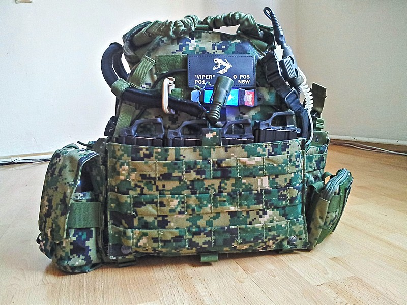 Scalable Plate Carrier od Eagle Industries 5* zásobníková sumka od Fire Force 4* Granátovka od eagle industries Odhazovák od CSM Ifak (kdo to vyrábí netuším a štítek se mi koukat nechce, ale je to orig  ) Grimlock a web dominator od ITW nexus Příloha: