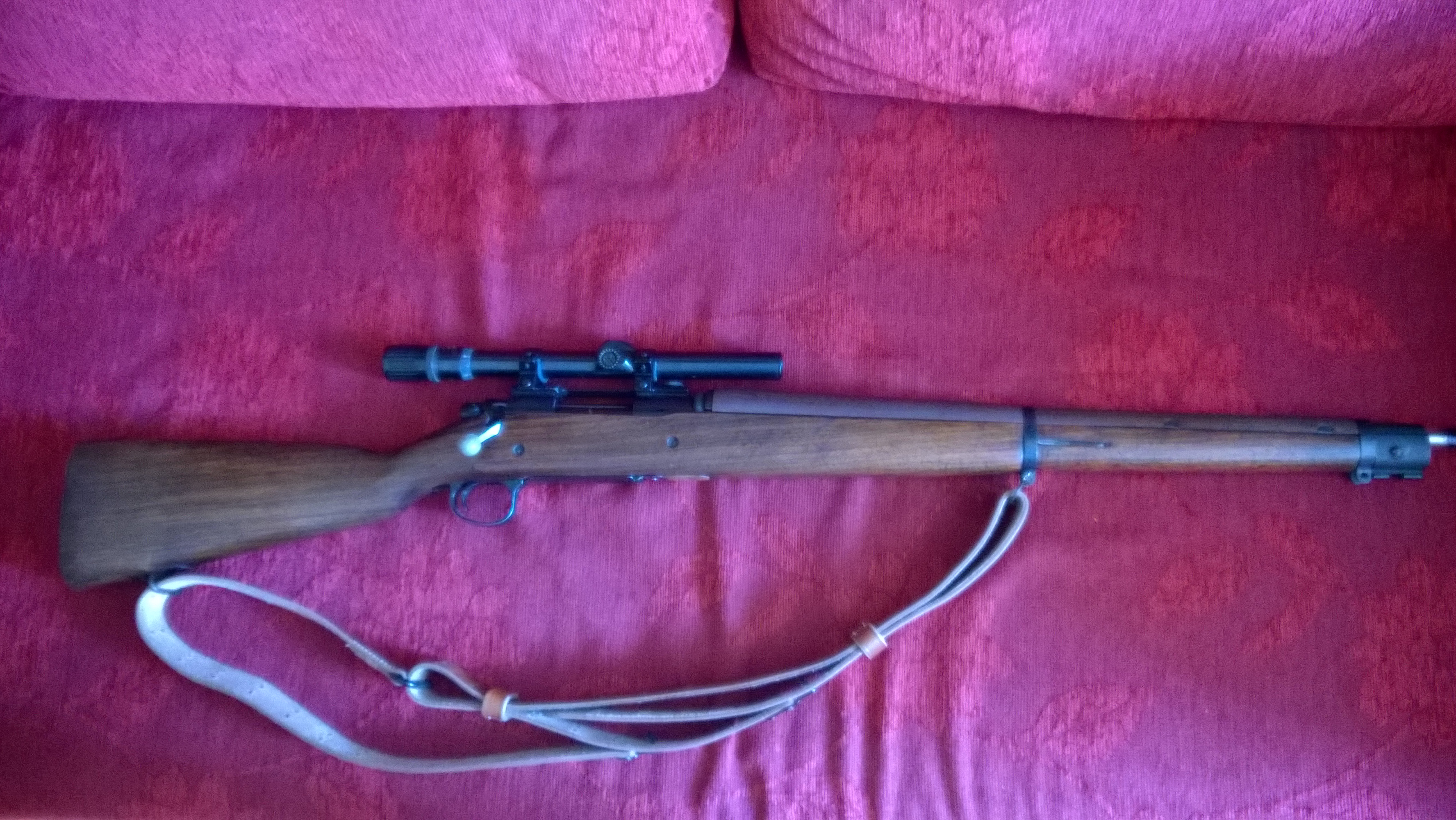 Je to plyn KJW m700 narvaná do origo 1903 dreva s kovaním..spravená tak, že neni problem to narvať naspeť do tela m700..takže mam defakto z jednej zbrane dve a nezabere to ani moc času prehodiť to. Je to moja prvá prekopávka a ešte je tam kopec práce..ale je bojaschopná a mam znej hroznú radosť keď vidím ako sa bližim k predlohe. Díky