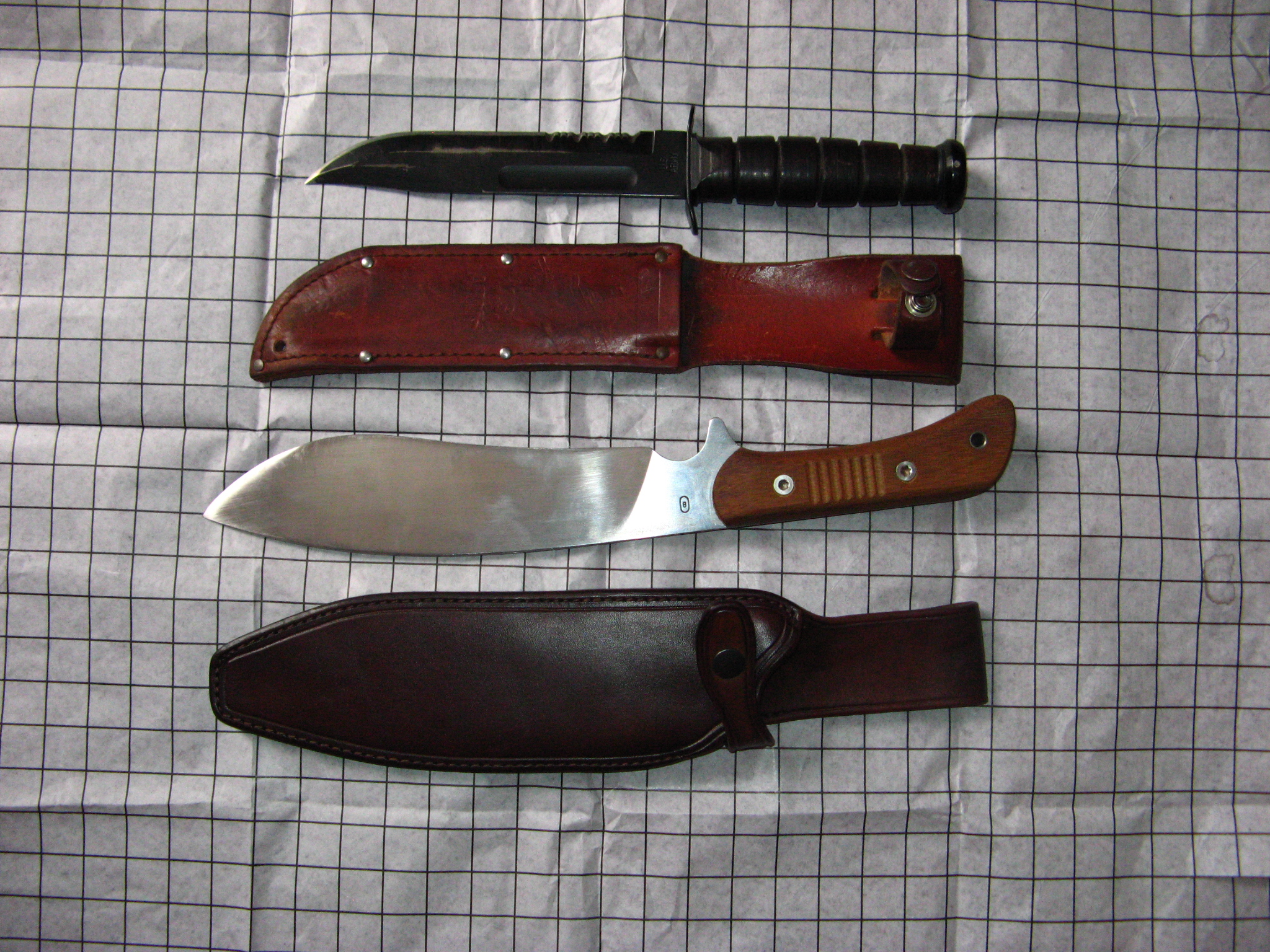 No mě se zdá nůž na přežití asi nejspíš pevnej tanto s kratší čepelí a pilkou, kdyby náhodou, můžeš si s nima vykopat zákop, rozbít sklo, a nakrájet si buřty:D
