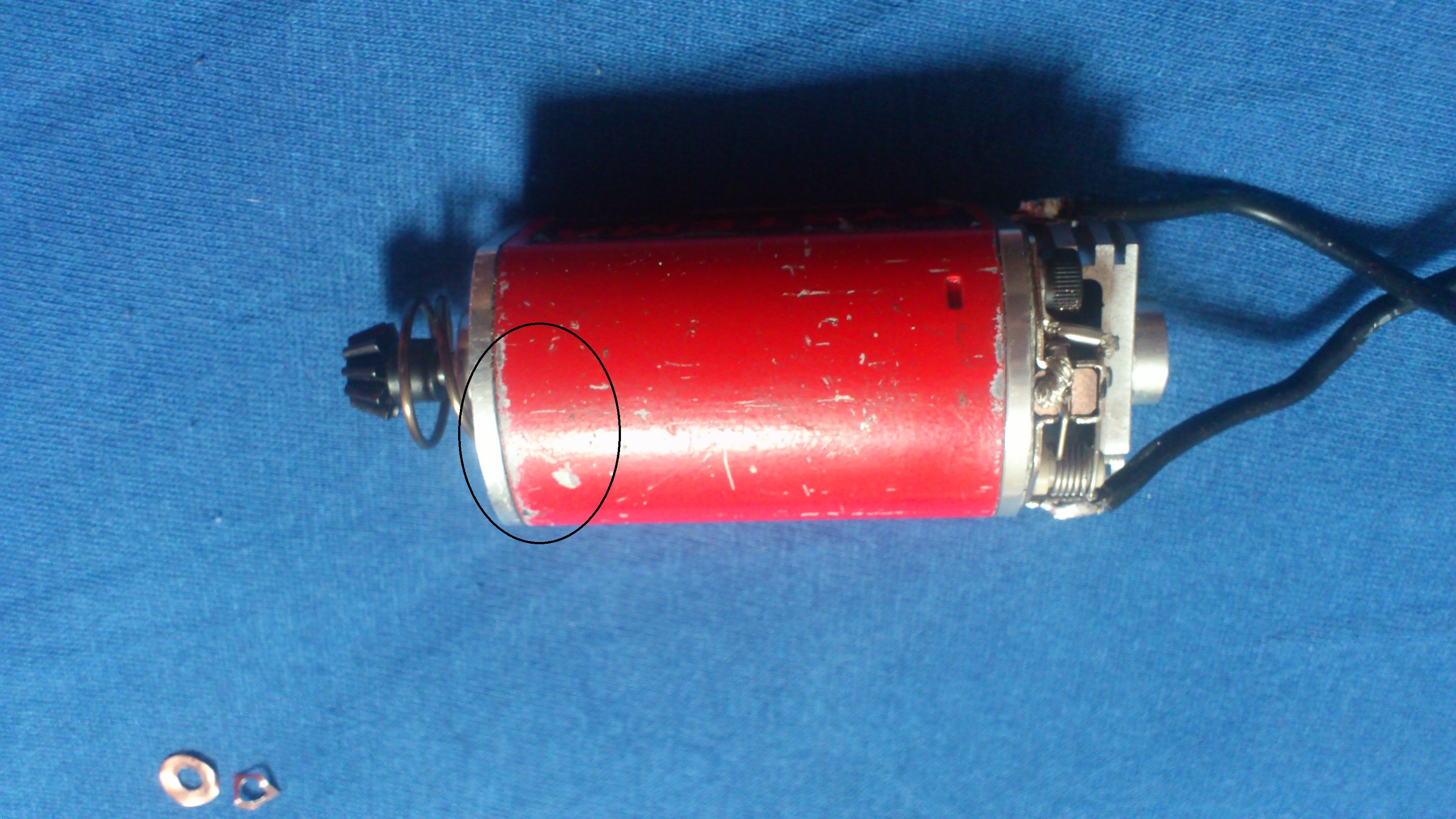 Po uvedeném telefonátu jsem se rozhodl podívat, co se stalo se zbraní a zjistil jsem, že do motoru po zmačknutí spouště jde napětí. S toho vyplývá, že je závada v motoru samotném. Po změření jsem zjistil, že cívka na rotoru je přerušená. Po podrobném ohledání hodinářskou lupou jsem nalezl studený spoj na komutátoru kde je přiletován drát od cívky. Podotýkám, že výše uvedená závada byla již jednou reklamována a dnešním telefonátem s panem XY mi byla tato skutečnost sdělena. Jedná se tedy o závadu stejnou již druhou. Musím konstatovat, že po výrazném zvětšení na fotce bylo zjevně letováno a dle mého laického názoru ne poprvé (foto přiložím). Ostatní upgrade díly nechám na prověření znalcem a prozatím nebudu zbraň rozebírat. Takže CNC mechabox 8mm a jeho náplň a další díly budou i nadále tajemstvím (prozatím).
