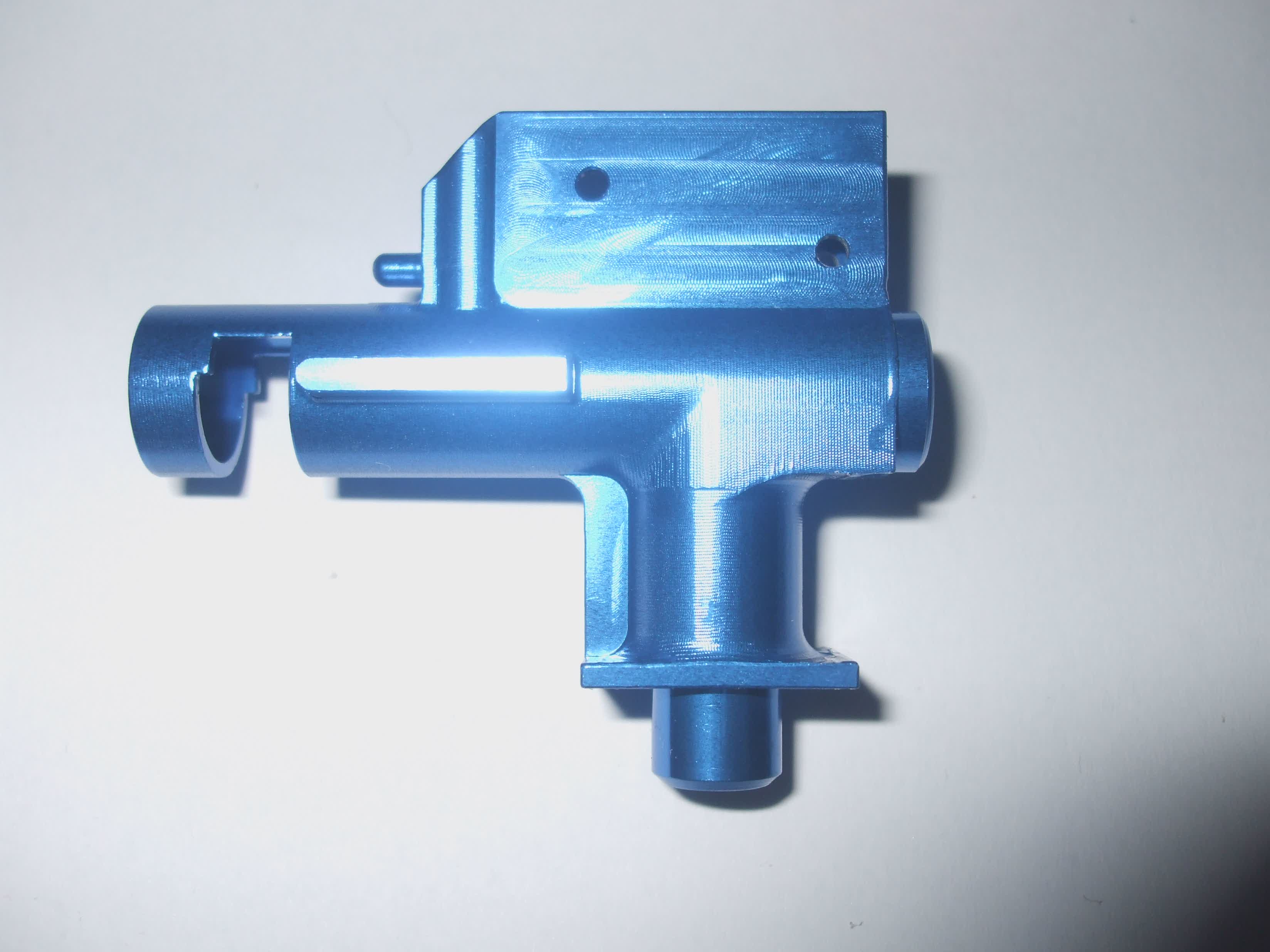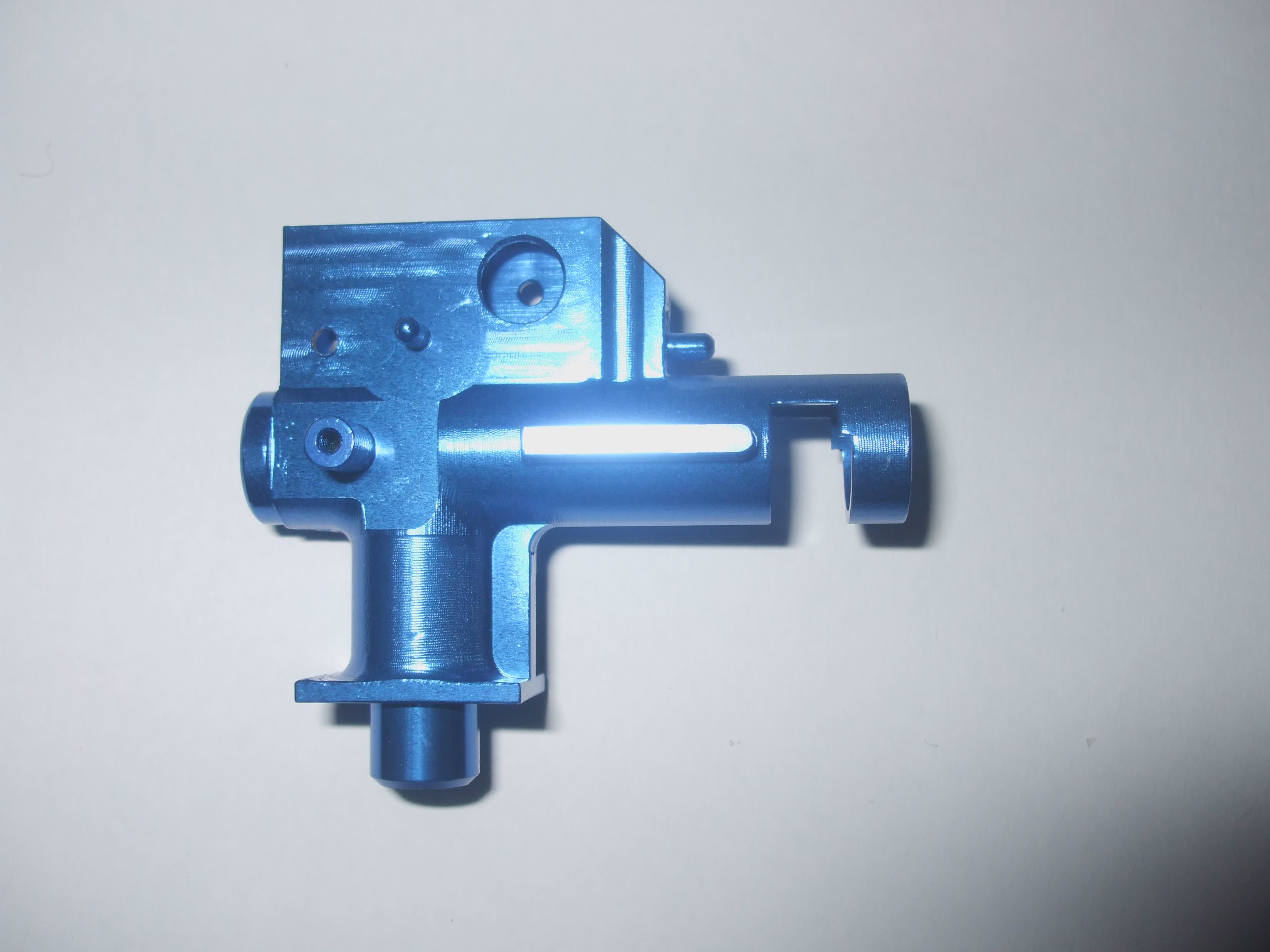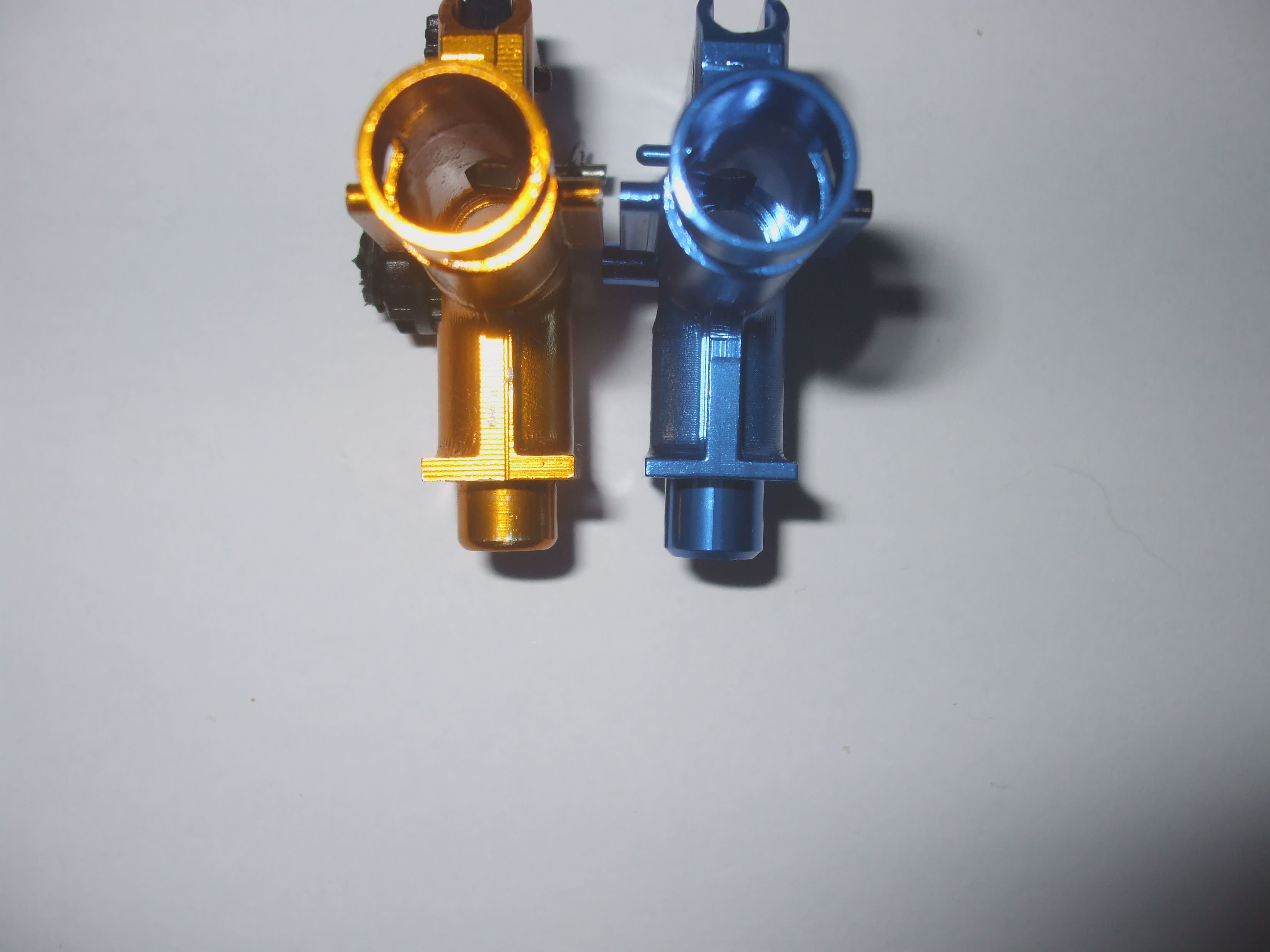-Díky delší trubici pro lepší otevření zásobníku, se komora dostávala do kontaktu se spodní částí těla, při zasouvání částí těl do sebe. Musel jsem o pár desetin zbrousit tělo (viz fotografie), aby ke kontaktu nedocházelo, pak tělo s komorou bez problému složit.