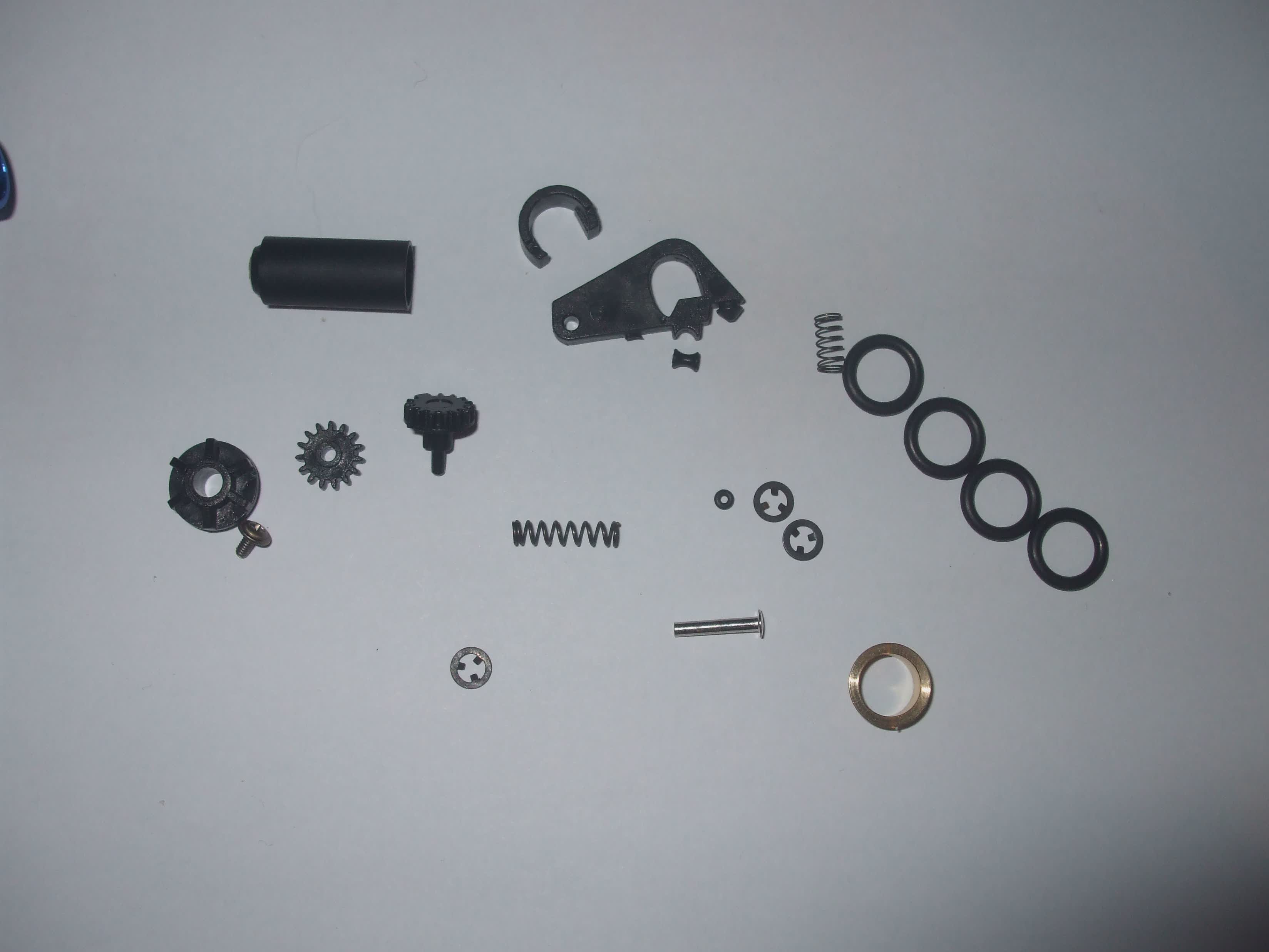 Set obsahuje: kolečka, přítlačné ramínko, tvarovaný váleček, zámek hlavně, hopUp gumičku, centrovací kroužek a 4 Okroužky proti odskakovaní hlavně.