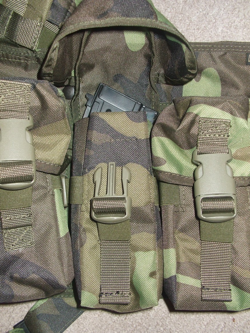 měl jsem podobnou ale to pistolové pouzdro zbytečně zabírá místo. Vybral bych si radši s dalšíma sumkama na zásobníky než s pouzdrem na pistoli.