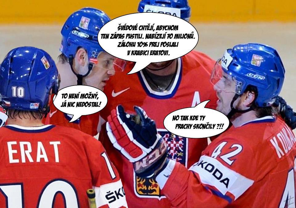 Tairo píše: no mne to prišlo dosť vtipné vzhľadom na tu kauzu čo sa uvás rieši  , yslim že unás by sa našlo toeý dosť milovníkov vína z Penty a podobnách skupín pracujúcich pre "dobro štátu"... A co má hokej společnýho s zasranejma politikama? Vůbec nic. To co se děje tu unás v politice je jen praní špinavého prádla a odstraňování potenciálních konkurentů nic víc.