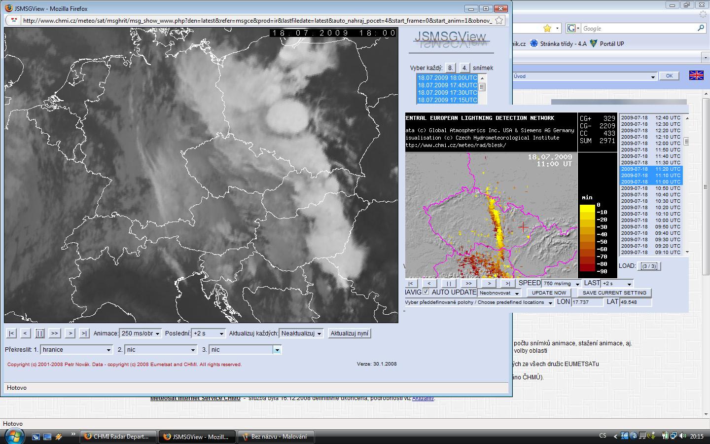Mart píše: Tady posílám screen-shot oblačnosti z družice + pásmo bouřek dříve toho dne. Připadá to ještě někomu jako polovina lebky? Někdo se na nás asi ten den trošku nazlobil  Jo půl lebky tam taky rozpoznávám  mstivý den