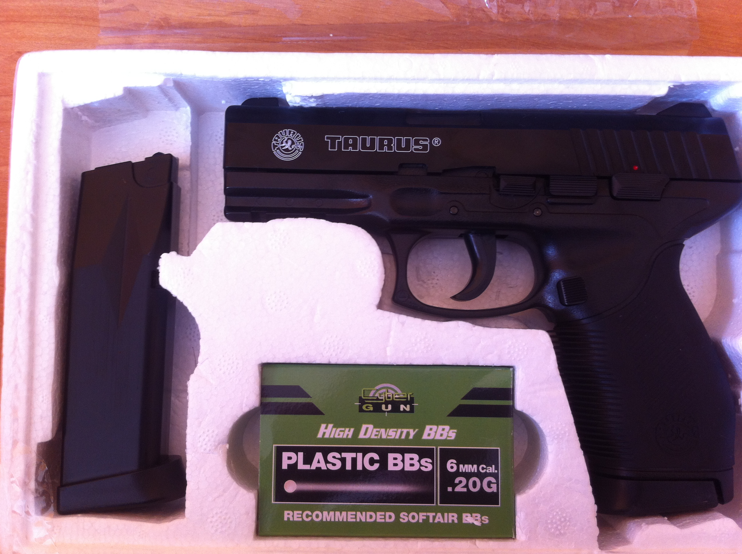 Na první pohled fakt luxus, váha jak u ostrý, ten kovovej závěr vypadá jak z oceli, prostě nádhera. Na druhej pohled hrůza. Zbraň je polofunkční, spoustu věcí si musíte sami dokutit aby to fungovalo. HOP-UP je nefunkční, nehopuje to ani s 0,12g. Při pohledu do hlavně je vidět proč, ty výčnělky lezou do hlavně tak aby se neřeklo, aby nevypadla kulička z hlavně ale HOP efekt to nedělá. Musel jsem celou tu komoru nahřát a trochu promáčknout aby to víc tlačilo na tu gumičku. Natahování taky moc nefunguje, ta zbraň má debilní systém podávání kuliček a zasekne se asi v půlce a pak je potřeba tam tu kuličku dorazit silou, jinak to nejde. Takže opět jsem musel použít pilník aby to podávalo jak má. Další problém je záchyt při prázdnym zásobníku. Někdy zachytí i když zbejvá poslední kulička. No zjistil jsem to až když jsem se střelil do prstu že tam ještě jedna je. To je bomba. Pojistka taky k ničemu, drží tak pevně že je to na hraně pevnosti toho plastu. Opět jsem musel pilovat. Má to hodně kovovej dílů, ale důležitý věci z kovu nejsou. Záchyt pístu už po pár výstřelech nese viditelný známky opotřebení a píst nevypadá o moc líp. Výkon je výbornej ale bez hopu je dostřel horší než u pistole co má 60 m/s. Muj starej Colt 1911 od UHC dostřelí mnohem dál (mam v něm pružinu ze Socoma od Marui). Pružina je další věc kterou bych chtěl zmínit, má uplně jinej průměr než je standard u manuálních pistolí Marui a UHC. Celkově nedoporučuju pokud se v tom nehodláte vrtat. Tak jak to vyndáte z krabice je to dobrý jenom na ozdobu. Možná že ten Taurus ze stejný HPA série bude lepší volba. Jo a ta jejich zlacená pružina tam neni, to je lež. Takže se potvrdilo to co v diskuzích o CyberGunu řikaj - je to číňan. Kupte si Maruiku nebo ňákou vyšší řadu od Umarexu, nebo i to blbý UHCčko. Tohle je neskutečnej krám.