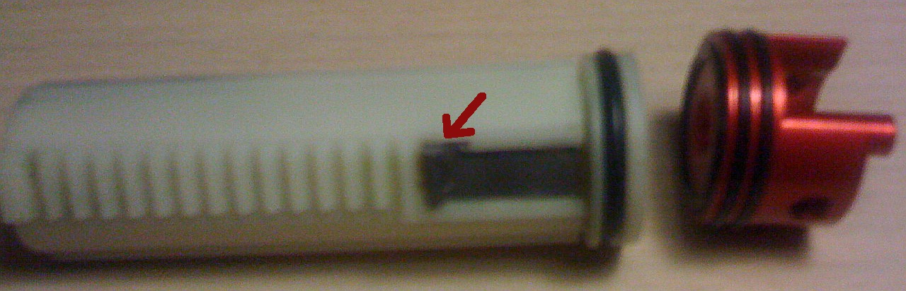 Ahoj, poprvé jsem sám rozebral zbraň, takže prosím o trpělivost, pokud mi něco nedochází  Jde o AK Masadu, v základu, zkoušel jsem, kde jsou úniky, a jeden celkem velký je na pístu u zpevněného zubu (viz. obrázek, nejde vidět, ale unikající vzduch je jasně cítit). Předpokládám, že budu muset vyměnit píst, mám ho vyměňovat rovnou s válcem? Další problém je, že je tam unikátní tryska, koupil jsem SHS hlavu válce a tryska je na ní dost volná, což mě nepotěšilo - rád bych se podobným problémům vyhnul, můžete mi doporučit konkrétní řešení, které by se do Masady hodilo? Vím, že to je dost unikátní zbraň, doufám, že s ní někdo má zkušenosti. A poslední dotaz, myslím nejhloupější  Díval jsem se na hop-up komoru, je z průhledného plastu, ale na vrchní stěně vůbec nevidím hop gumičku. Je tam posuvné nastavování hopu, ale při jeho posunu nevidím nikde žádnou změnu, jak má u tohohle typu fungovat? Díky za radu!