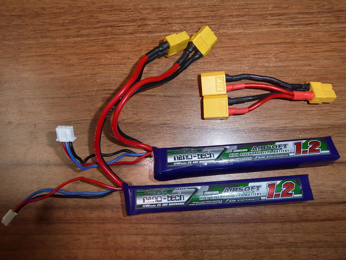 Zdravím, podělím se s vámi o takovou vychytávku, kterou již nějaký rok u svých M4 používám. Mnozí ji možná také používáte, nebo vás něco podobného už napadlo, každopádně k věci. Možná jsem sám, ale nejsem zrovna velký fanda externího uložení akumulátoru, které podle mě z většiny případů hyzdí vzhled zbraně (pokud se nepodvede nějaké elegantní řešení, třeba v Peq boxu). Problém nastává když máte nějaký lepší upgrade a nemáte místo, kdam vložit velké aku (= pevná pažba). Moje řešení - do standartního předpažbí M4 se celkem v pohodě vejdou dva akumulátory mini 9,6V, nebo Lipol 3S (11,1V) spolu s jejích paralelním zapojením docílíme dvojnásobné výdrže a trochu lepšího výkonu oproti jednomu akumulátoru. Vím, že se dělají dělené akumulátory, ale sehnat nějaké nad kapacitu 2000mAh může být problém. Takto můžete získat kapacitu třeba 3200mAh s tou výhodou, že tam pořád můžete připojit buď jen jeden, nebo zmiňovaný dělený. Zjednodušeně takto http://i.imgur.com/QkG40.pngA takhle vypadala moje první verze ještě se starými konektory http://bit.ly/NA0ARq