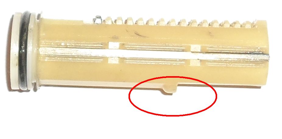 Zdravím. Chcel by som vymeniť sériový umelý piest v mojej mp5j blowback za lepší, ale nenašiel som nikde nejaký piest co by bol označený ako blowback. Má na spodku taký výčnelok ktorým sa blowback posúva viď foto. Neviete kde by sa dal taký piest zohnať? Možno by sa dal upraviť aj štandardný piest a vyrobiť mu taký výčnelok. Vďaka