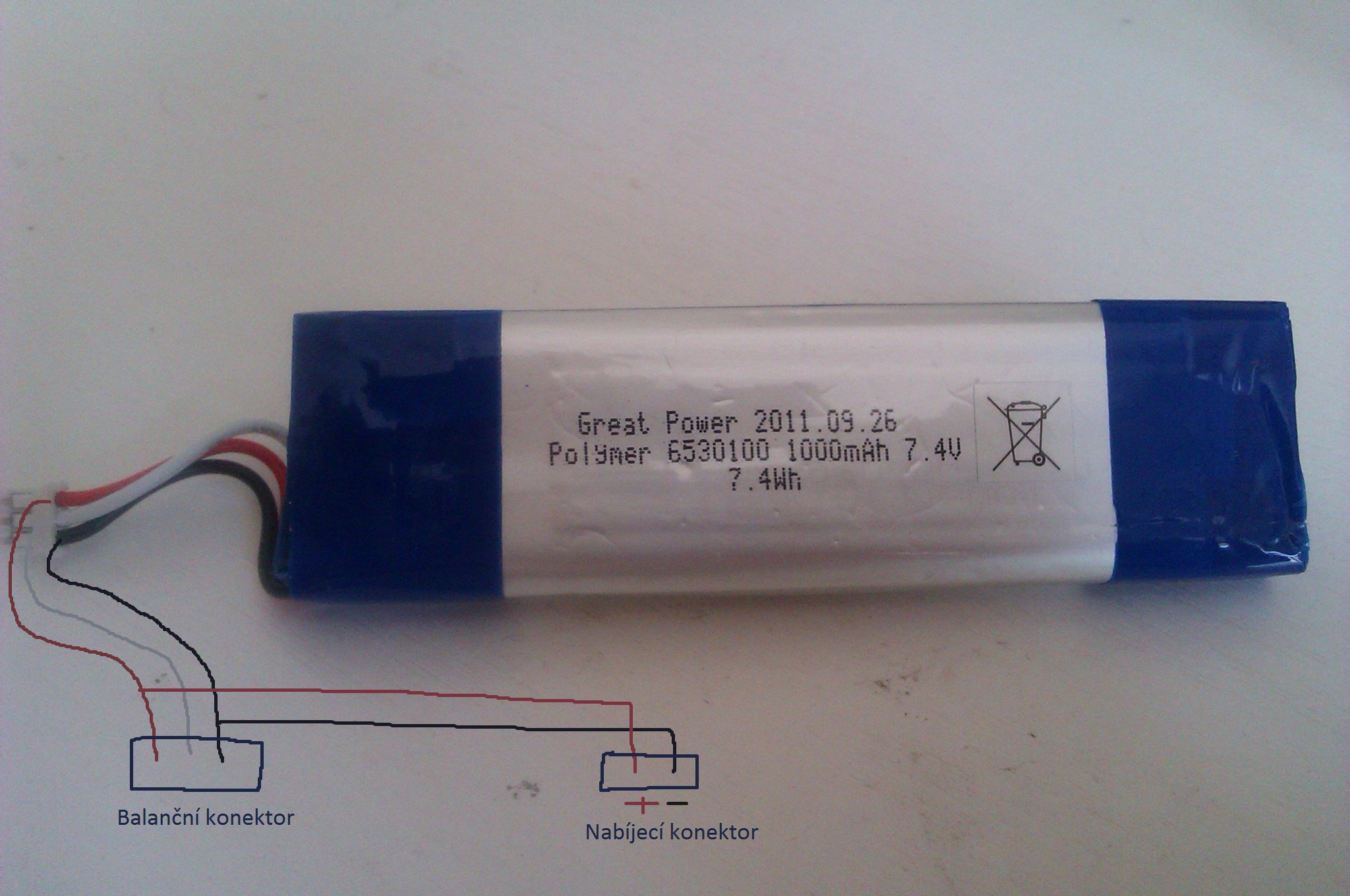 Můžete mi prosím poradit, jak nabít tohle? (viz obrázek). Jedná se o dva LiPo články s vývodem na tři dráty, nic víc. Balanční konektor není, nabíjecí tři dráty? Nechápu... Napadá mě jedině dva krajní jsou na nabíjení, ten prostřední je jakoby mezi článkem 1 a 2, takže to nějak rozdělit a udělat nabíjecí konektor a balanční konektor, jako to mám v tom praso-nákresu. Šlo by to? Nabil bych to pomalu a opatrně nízkým proudem, tak by to snad nebouchlo...