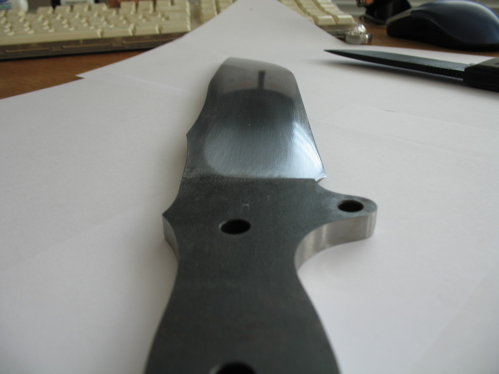 Tak je tady ten památnej den, dorazila mi vybroušená a zakalená čepel od nožíře :twisted: Je to full konvex(tzv čočka) nabroušená tak, že jednim lehkym tahem rozíznete A4 na výšku a kalená není jeko celek, ale ostří je o moc tvrdší než hřbet....což znamená, že je nůž parciálně popouštěnej a ve hřbetu má navíc 8mm :twisted: .....nožíř prohlásil, že lidskou silou nůž v podstatě nejde zničit a potom, co jsem viděl jeho práce na knife.cz tomu skutečně věřím :twisted: