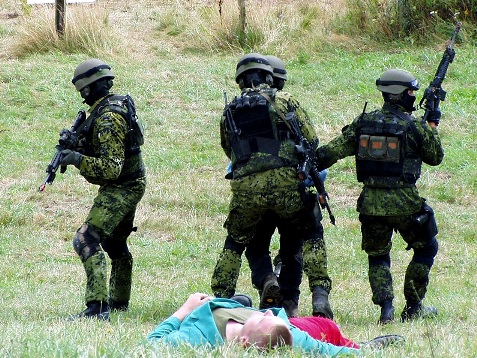 Pak by teda šlo něco rozpoznat z modifikace Cold War Rearmed (předělávka OFP do ArmA), kdy si dali tvůrci záležet na tom, aby jednotky víc odpovídali době (žádné M56 u US, či Vz.60 doplňky u CA). Tam tahaj černý LC nosný systém (opasek, 2 sumky, buttpack, 2 polní flasky) a černá BDU. At již OFP, či ArmA verze OFP, tak to dle reálné jednotky, jak říkal Griffon, nejspíš nebude. http://img62.imageshack.us/img62/6585/spesl3.jpg