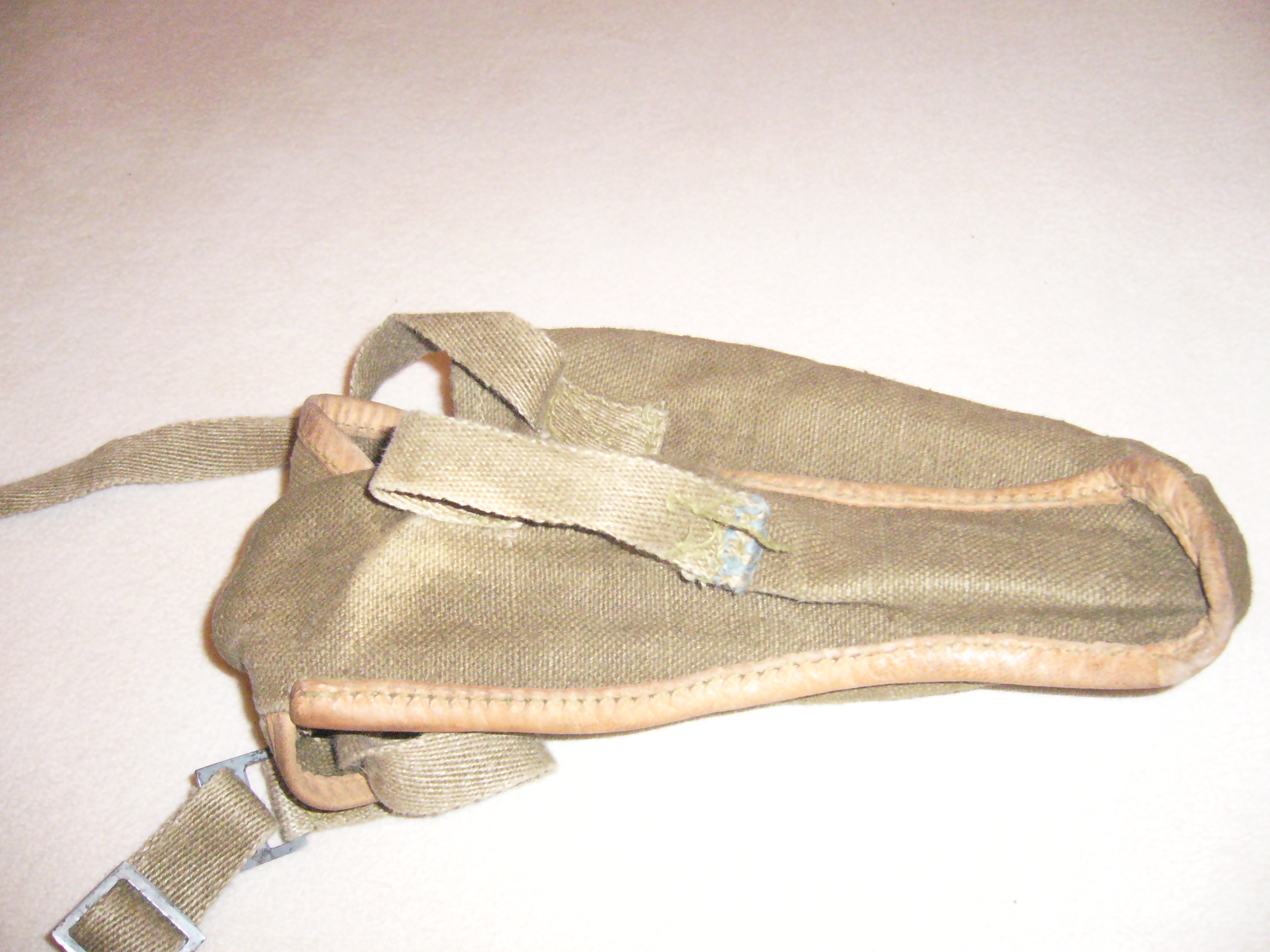 Jedná se o starší typ vaku na plynovou masku, pak byl typ ještě s jednou přihrádkou jako psal deacon a pak ty pogumovaný. Tyhle starý se pak prej ještě lišili různejma knoflíkama.