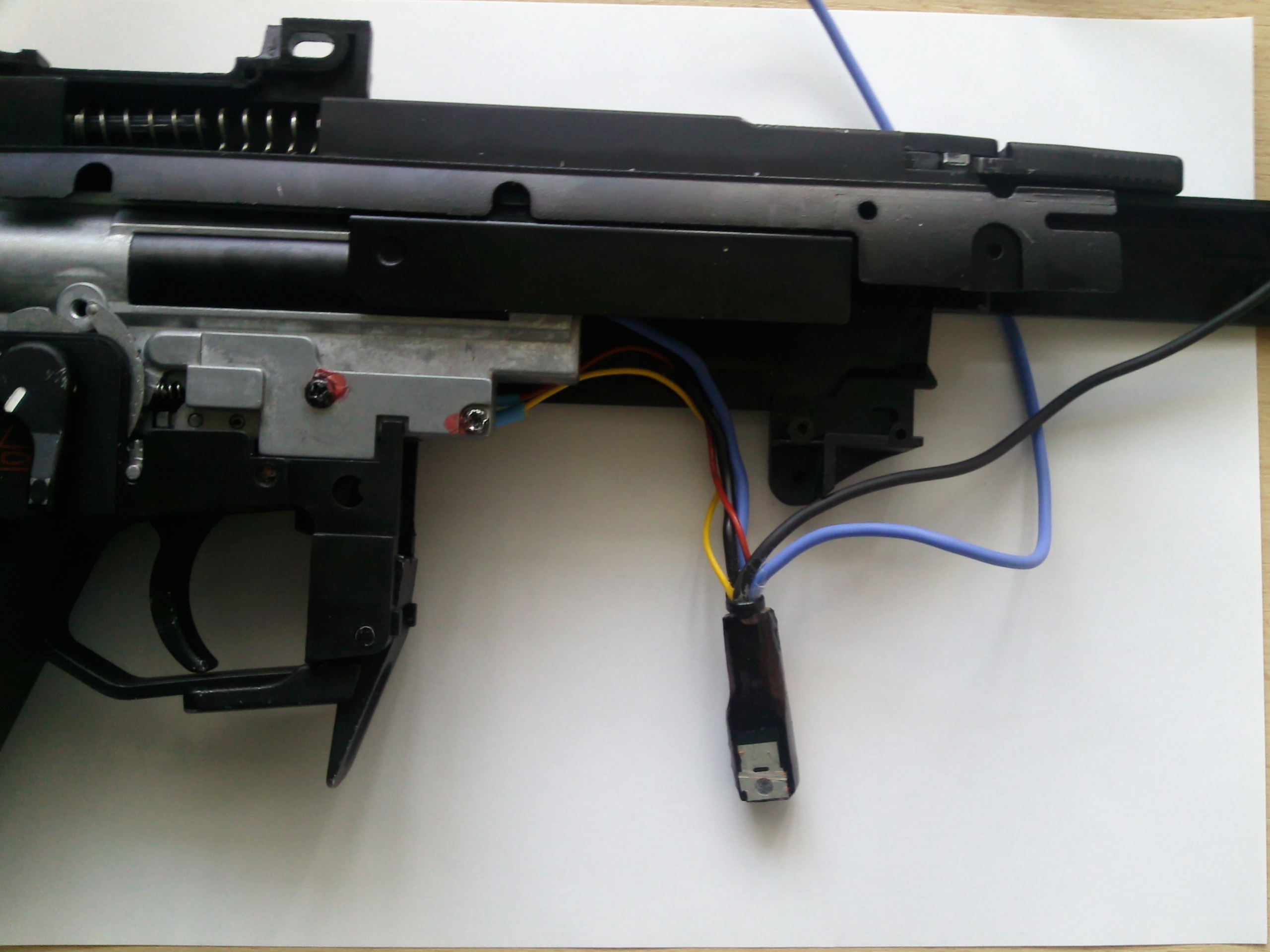 teĎ sem to zkoušel, prostě jen spojováním drátů ,a funguje, pak jsem je napájel ke spošťovem kontakům, a vrazil mezi ně ten bazmek od spouště, jako kdybych střílel,a fungovalo to . Takže já už fakt nevím. když tam předtím byla komplet spoušť, tak to blblo, teď bez spoustě samotný to jelo .....