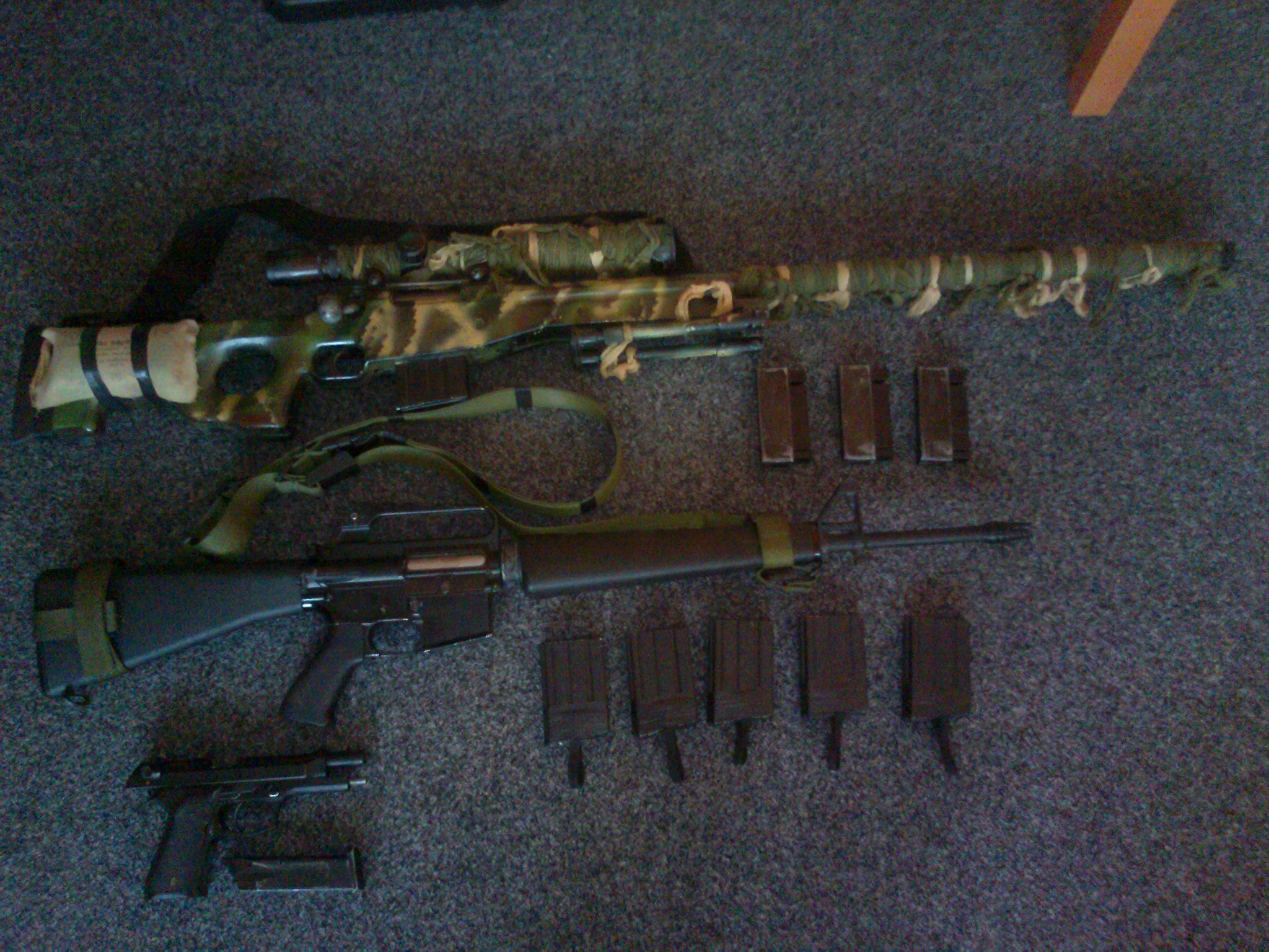 Donedávna jsem provozoval jen GBB pistole. A to zdůvodu, že jsme spíše cvičili použití zbraně v modelových situacích, než nějaké hry v lese. Až v poslední době jsem pořídil svoje první AEG  Chtěl jsem zkusit i airsoft IPSC, ale to se v mém okolí moc nechytlo. Takže: KWA Glock19Příloha: