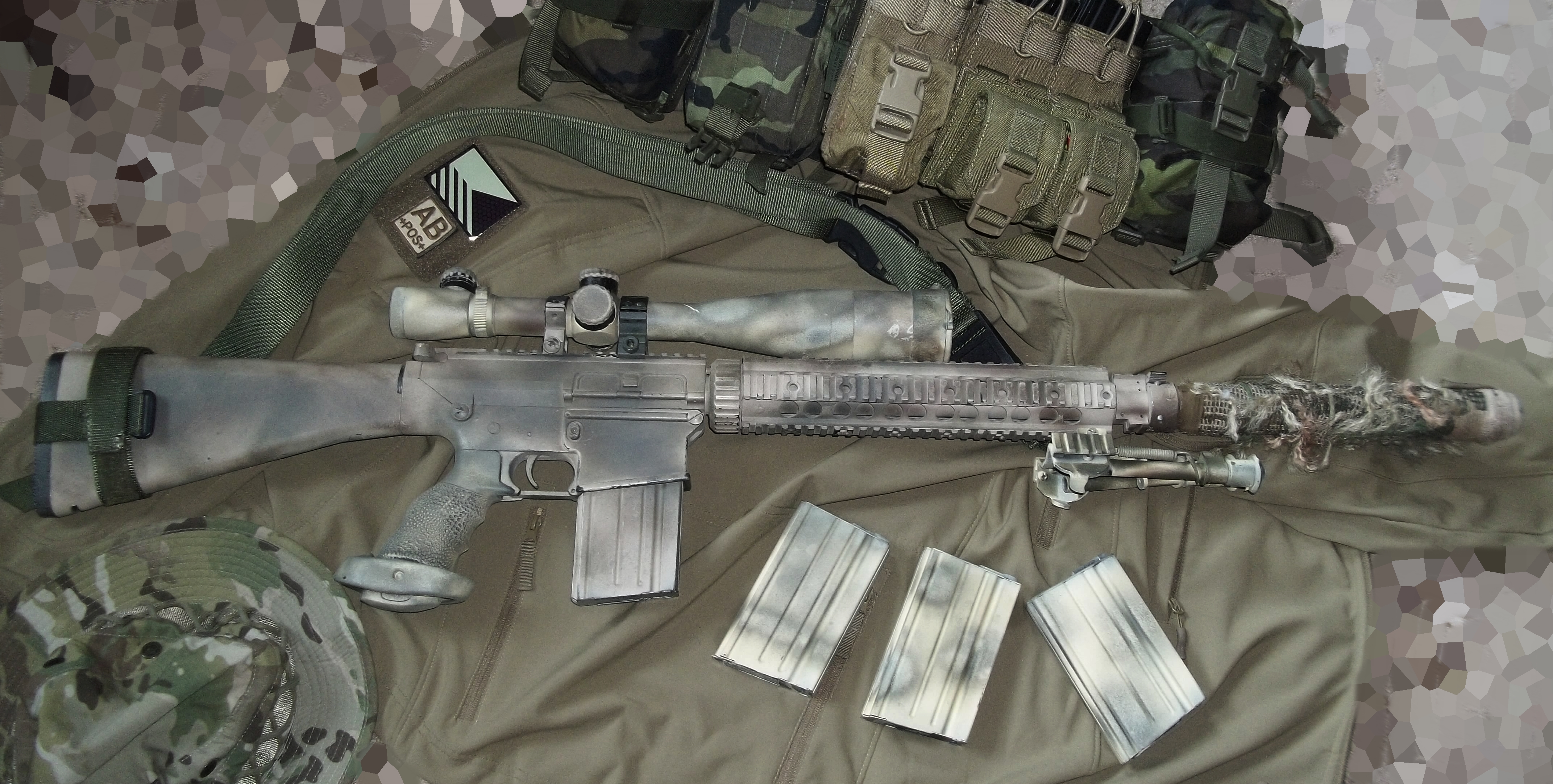 Tak tohle je muj miláček  Asi už finální verze... Jen zvažuju nějakej lehčí nástřik, ale nevim jestli bych to s tim spíš nezkazil a nenapadá mě jak to udělat...možná přes barakudu udělat jen pruhy nebo nějaký jednoduchý tvary, prostě tak aby to sedlo k woodlandum a hlavně to nezkazilo vzhled. Když by měl někdo nějakej nápad, tak budu jen rád