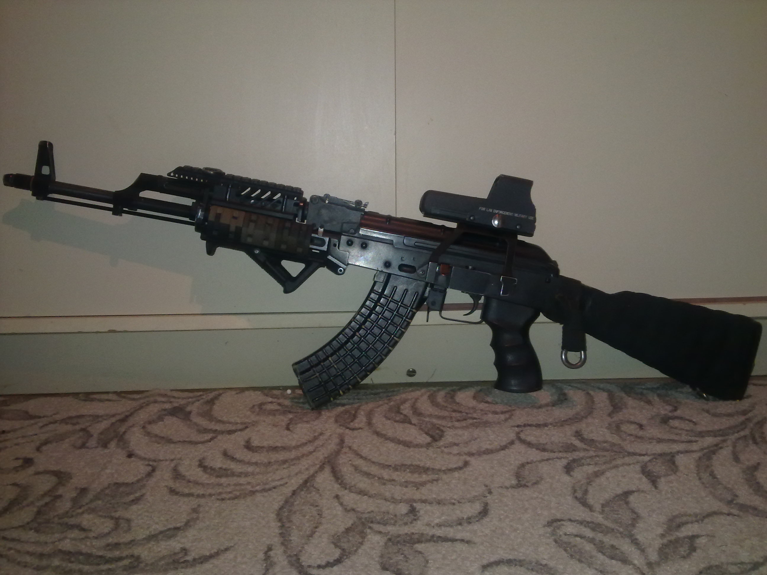smolda píše: No tak ten eotech je tam fakt odpornej...kdyby byl alespoň někde na předpažbí...ale ještě na tý montáži  nic proti tomu, když každý řeknem svůj názor, ale u tebe je pěkný snad jen tvůj kvér, zbytek má prostě vždy chybu.  Jinak taky jsem měl orisovanýho kalacha (sice 74) a prostě se mi to líbí a s tím eotechem ještě víc