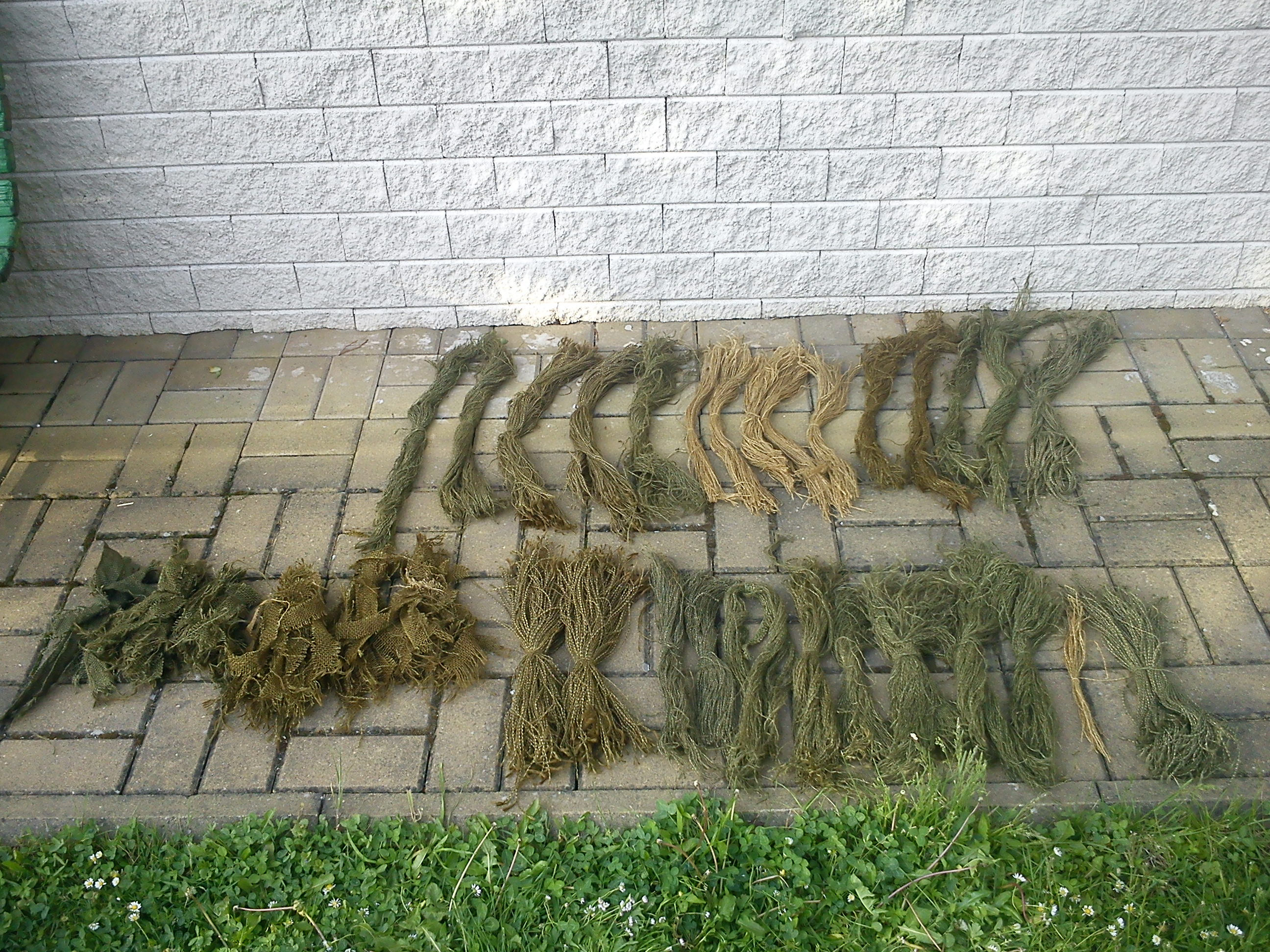 Tak jsem udělal nějaký foto z terénu, neměl jsem na sobě žádnou vegetaci, prostě jen obarvená juta. přivítám kteroukoli radu co vylepšit