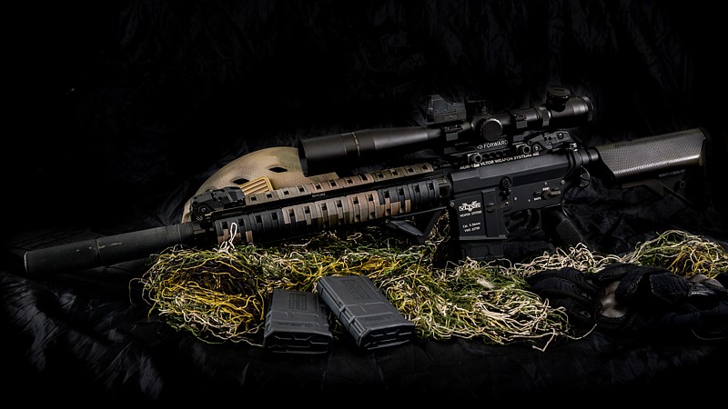Takova skladacka co kde bylo a hodilo se a ja to zbastlil do jakoze sniperky  Je tam: Vltor telo (G&P) Noveske predpazbi 12.658" (Element) Optika Mark4 Scope Mildot 3.5-10x40 M3 Kolimator Mini Red Dot Miridla Magpul Pazba Crane MK18 ModO LMT (na fotce) nebo VLTOR IMOD Modstock Grip AFG Magpul Zasobniky P MAG (tocaky na 120) Uvnitr je X High-Tech CNC hlinikovej mech Aimtop kola a dalsi dily, Guarder valec, tryska Morris, Prometheus 500m hlaven, ASpro hop komora modra, Aimtop Hop Guma, ASCU procesorovka s mikrospinacem a krmim to nejakou tou 7,4V lipolkou, pripadne 9,6 LiFe. Se 140SHS pruzinou to ma nejakych 134m/s s 0,28tkama.
