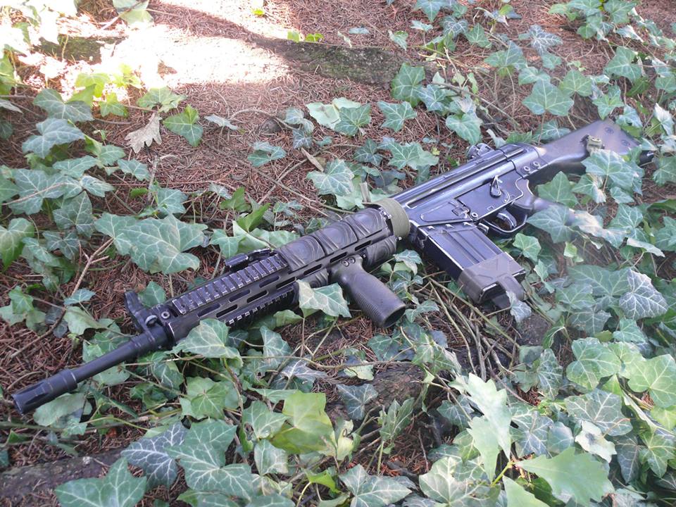 Moje nová kráska, sice měla být pro přítelkyni, ale zabavila mi SUčko a tohle zbylo na mě. Tlumič je takový provizorní, vyrobený doma - v budoucnu bude pískový. Místo téhle šeredné optiky příde ACOG nebo možná Elcan Specter, ale dvojku kvůli kosmetickému detailu se mi v současnosti fakt dávat nechce... Naopak SCAR dvojnožka/grip je fakt úžasně praktická.