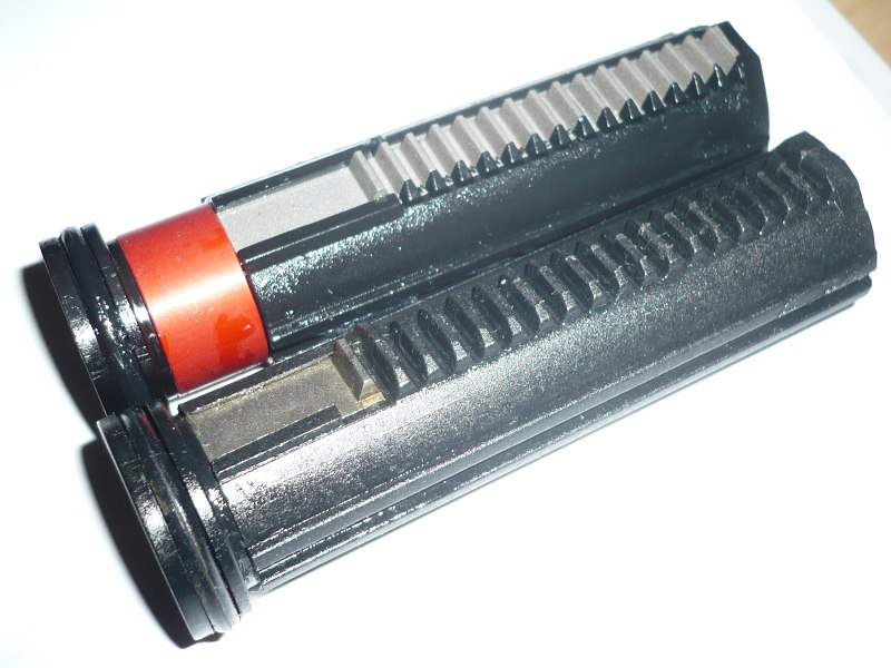Tak abych to uvedl na pravou míru. Ty dva písty na fotce v mém předminulém příspěvku: Klasický (16 zubů) s tím červeným vypodložením je od zaniklého Powerupgrade Delší (19zubů) je původní od Army
