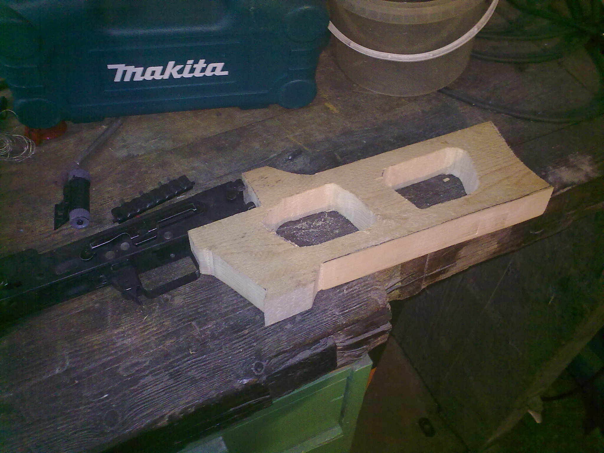 Tak tady je další postup, kompletně obroušená a vyrovnaná pažba s hotovou komorou pro motorek což bylo ze začátku docela oříšek. Příloha: