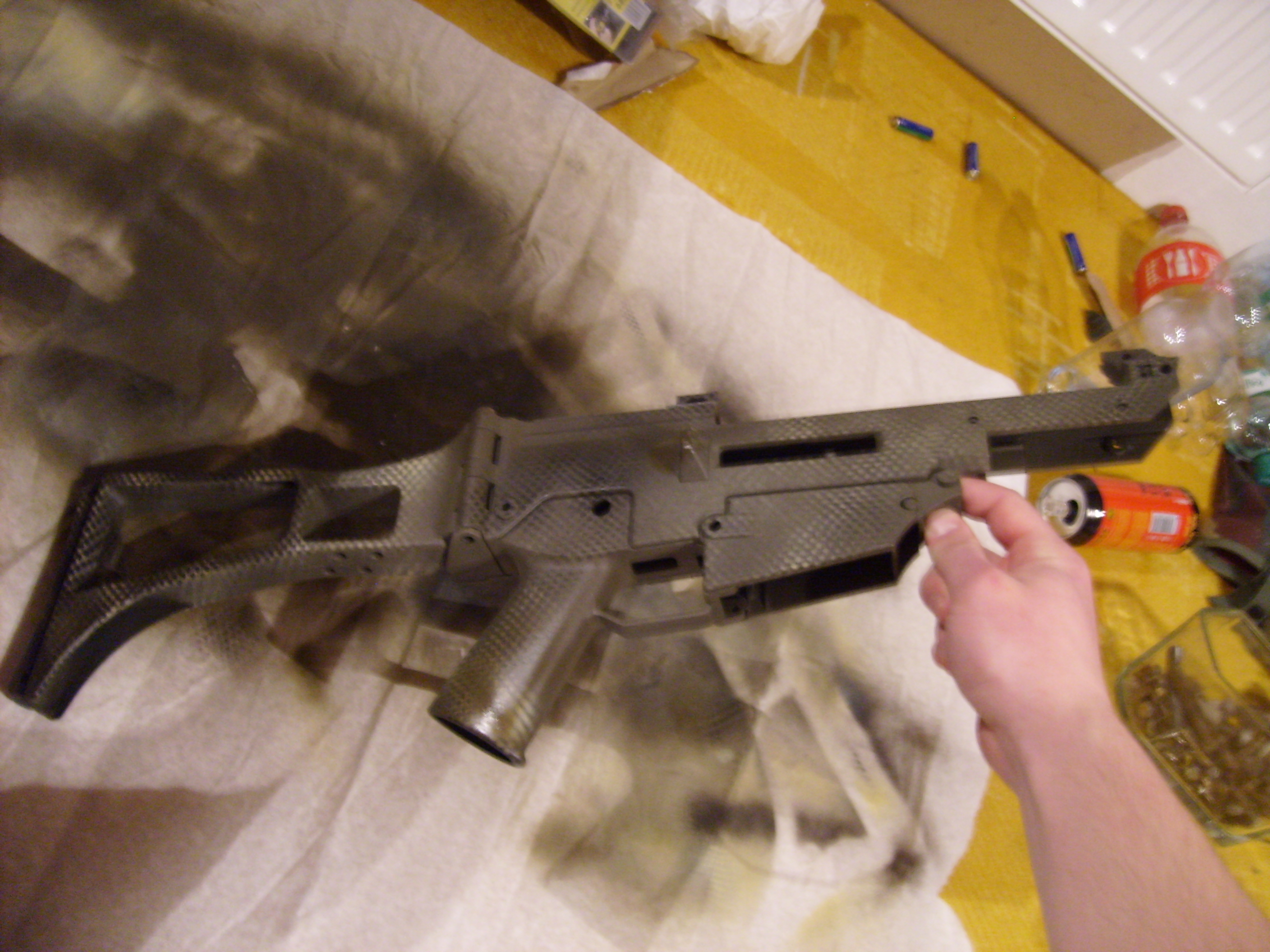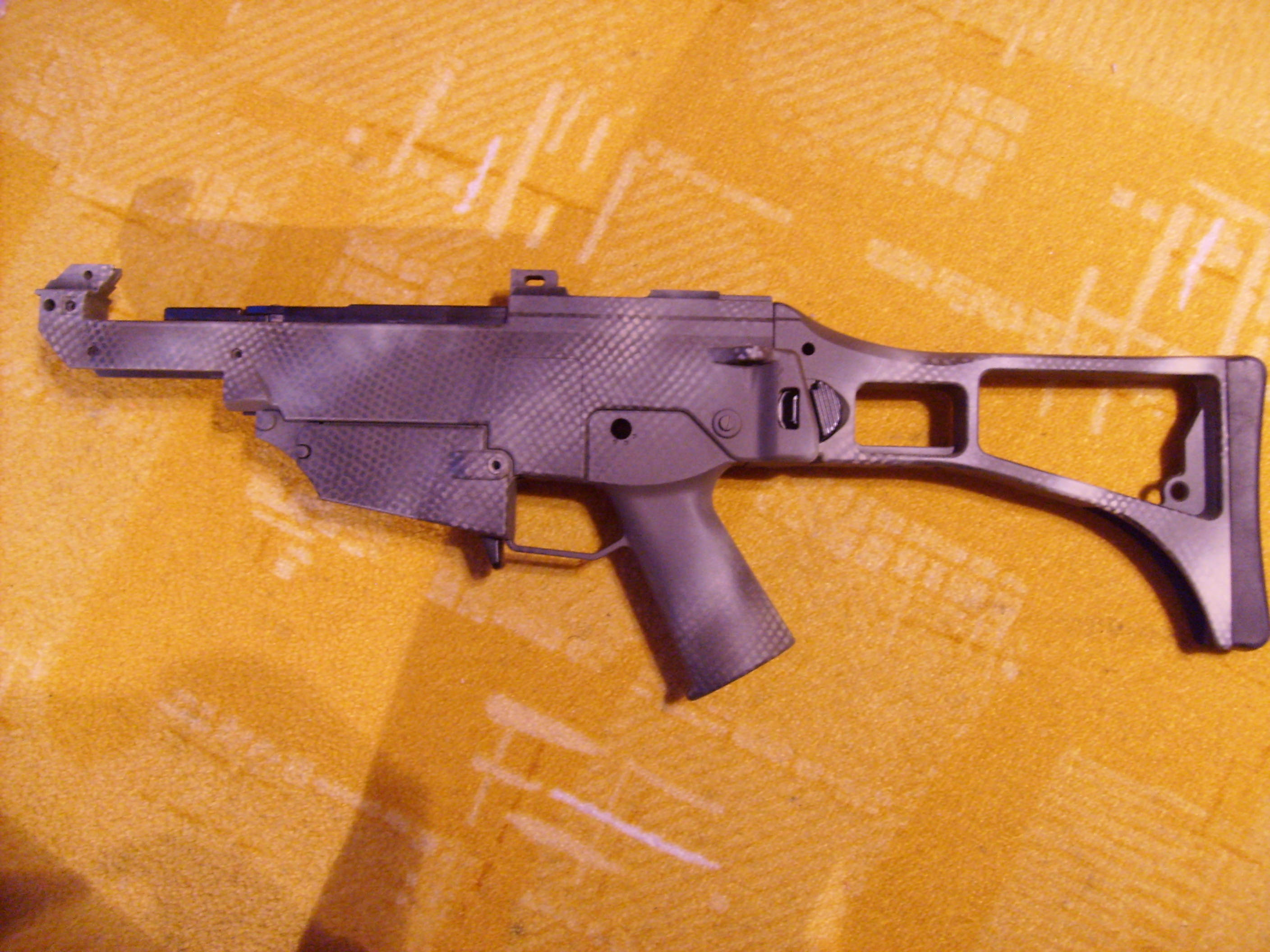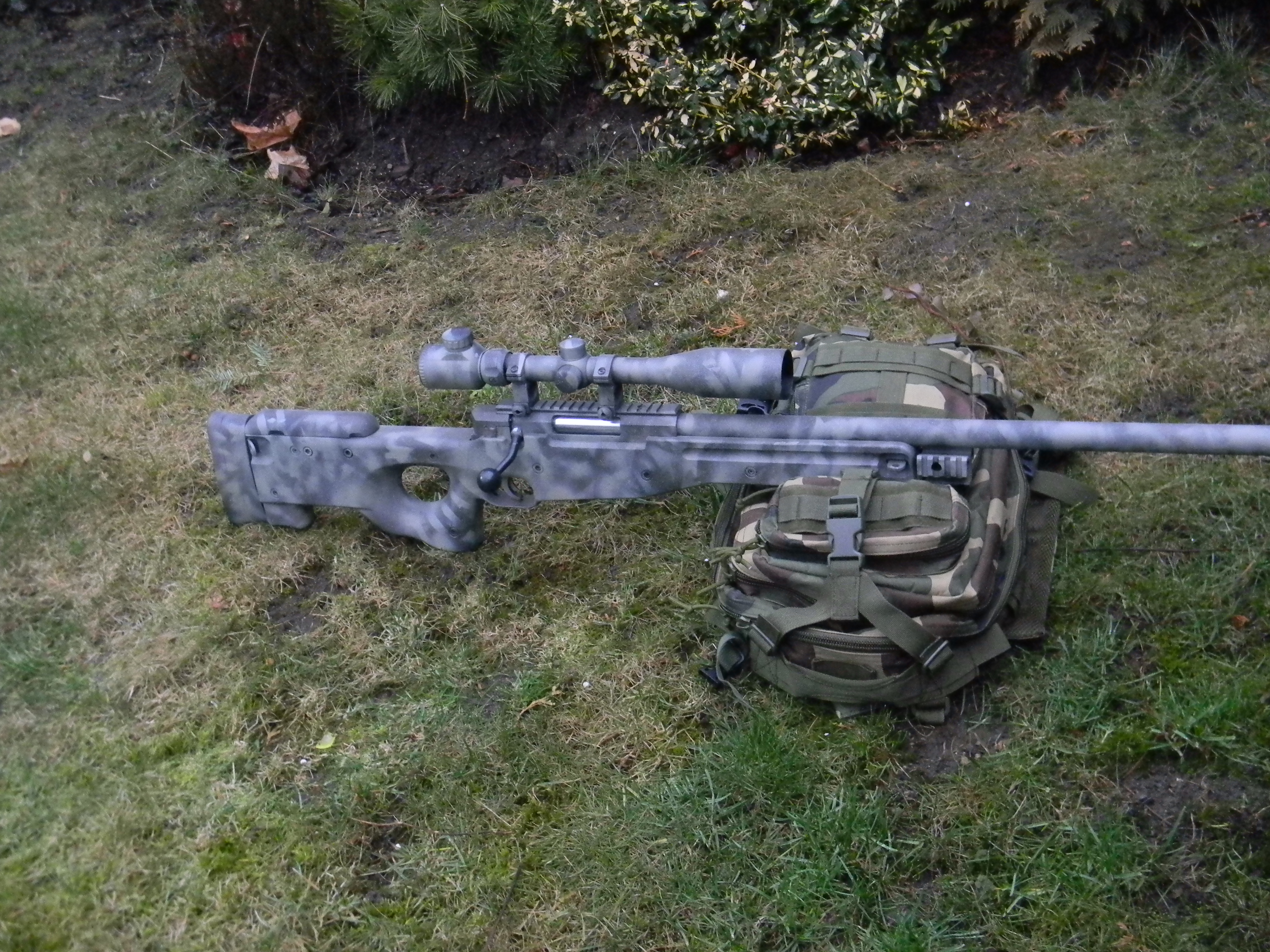 Objednal sem spreje na sniperku ale předtim sem si vyzkoušel svoje schopnosti na starym těle z G36, jinak lištu a předpažbí sem nechal černý protože bych je eště někdy možná použil na svoji G36 a s maskovánim by to s černym tělem vypadalo blbě... No jinak sem to dělal sprejema Fosco-žádný Krylony a takle pěkně to dopadlo