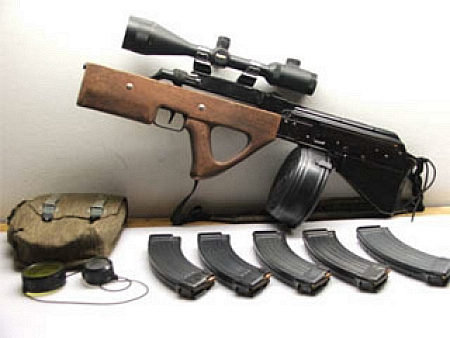 Je to překopaný AK s home made předpažbim ala PPS a pažbou z P90 jetsli sem to dobře rozluštil