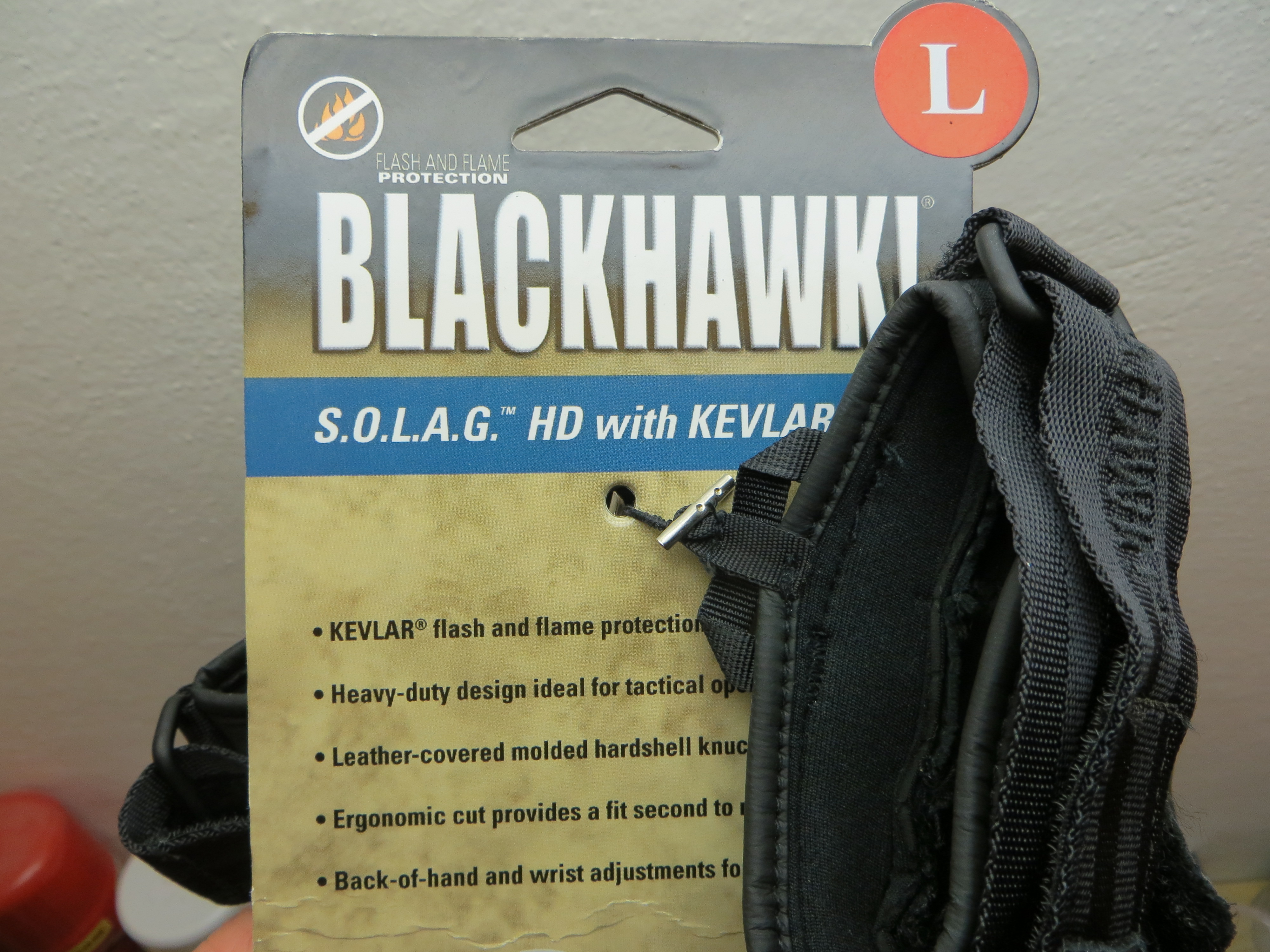 Prodám taktické rukavice Blackhawk S.O.L.A.G. HD w/Kevlar. Jsou úplně nové, nepoužité, s originálními připevněnými visačkami. Rukavice jsou velikosti L, tedy podle výrobce na obvod ruky 23,5 až 25,5cm.