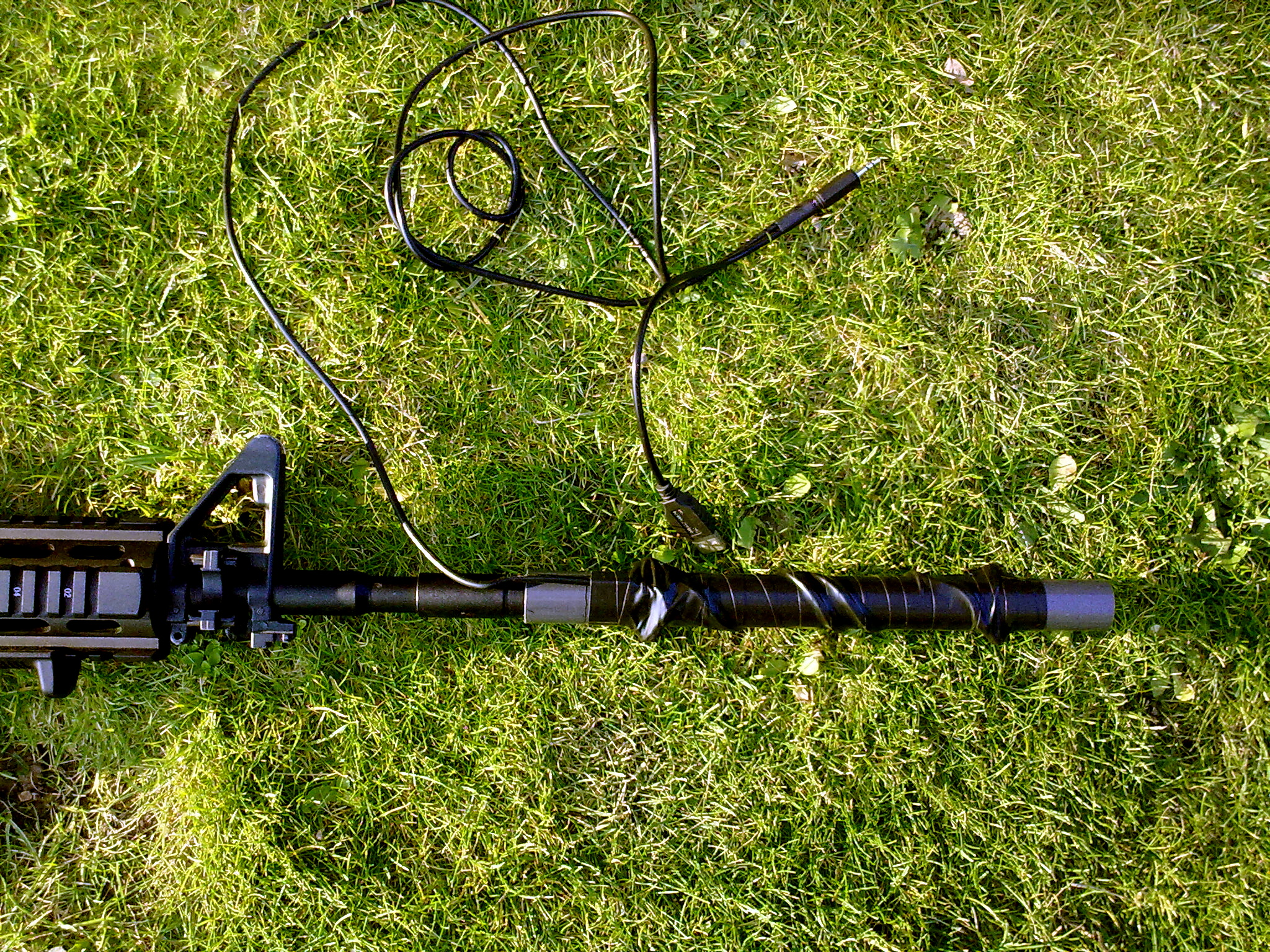Tak hotovo. Krabičku žádnou dělat nebudu, je to velmi lehké, takže když to spadne, nic se tomu nestane. Je to v plastový trubce, která mi byla darována, takže o ní mnoho neřeknu. Diody jsou upevněný tavnou pistolí a pro nezničitelnost je to celé stáhlé černou el. páskou. Trubka se dá krásně nasadit na vnější hlaveň M4 (což mě maximálně vyhovuje), u jiných zbraní se bude muset držet ve vhodné pozici.
