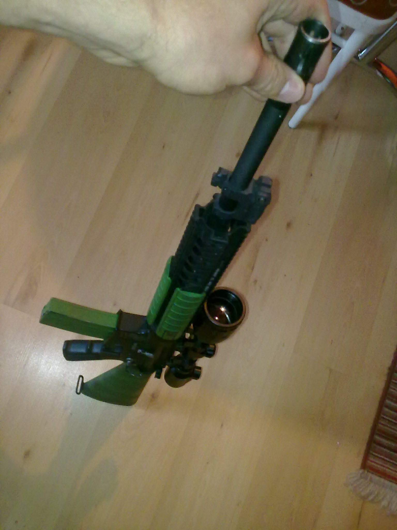 Krezz píše: Ja doufam ze bude vypdat dobre, protoze takto chci prestrikat G36 a nechat na tom par cernejch doplnku na efekt. Já chci přestříkat to co je zeleně na Khaki a tělo nechat černý, protože se mi nechce to tělo ku.vit nástřikem. Chtěl bych to víceméně udělat s doplňky od Magpull (pažbička,pažba,ris krytky.....)