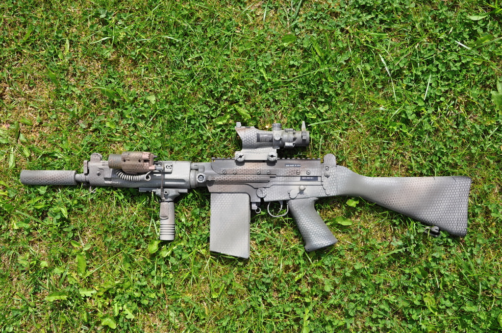 SPR mod2 PJ optika 2-7x32 (ch) tlumič larue tactical (element) dvojnožka ??? (ch) sniper grip (PJ) očko na popruh (KA) vnitřek z většiny vyměněnej, tahám to 3s li-pol Příloha: