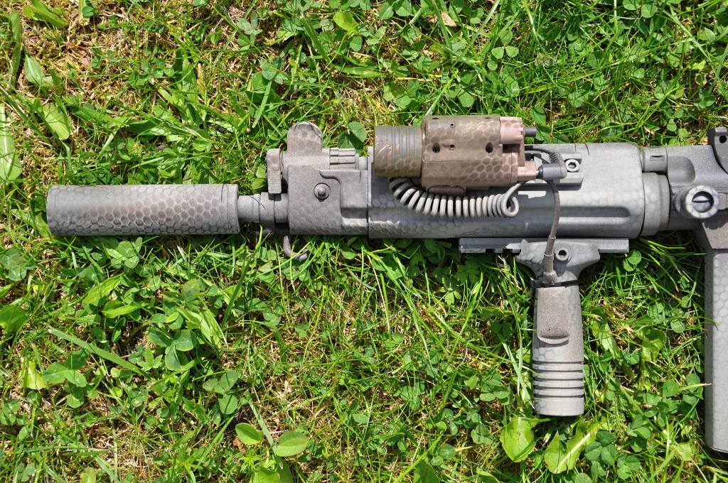 UMP double eagle zlomená pažba vyměněna za kus duralu ohlýho z vršku těla na rukojeť, tlumič (deep fire) zasunutý až do předpažbí Příloha: