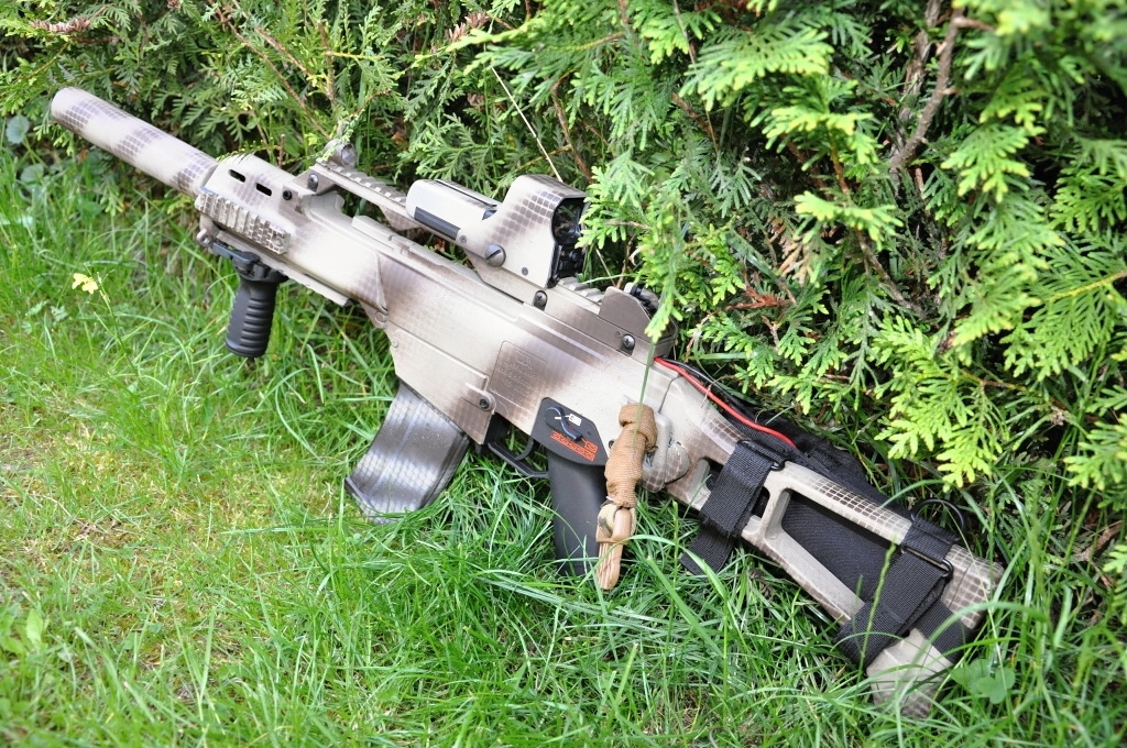 - zbraň je přestříkaná by DALI (krylon) - dodatečně přidány RIS na předpažbí - 4x ACOG (made in china) - vnitřek kompletě vyměněn, celý upgrade from HRABY - baterie LiPol