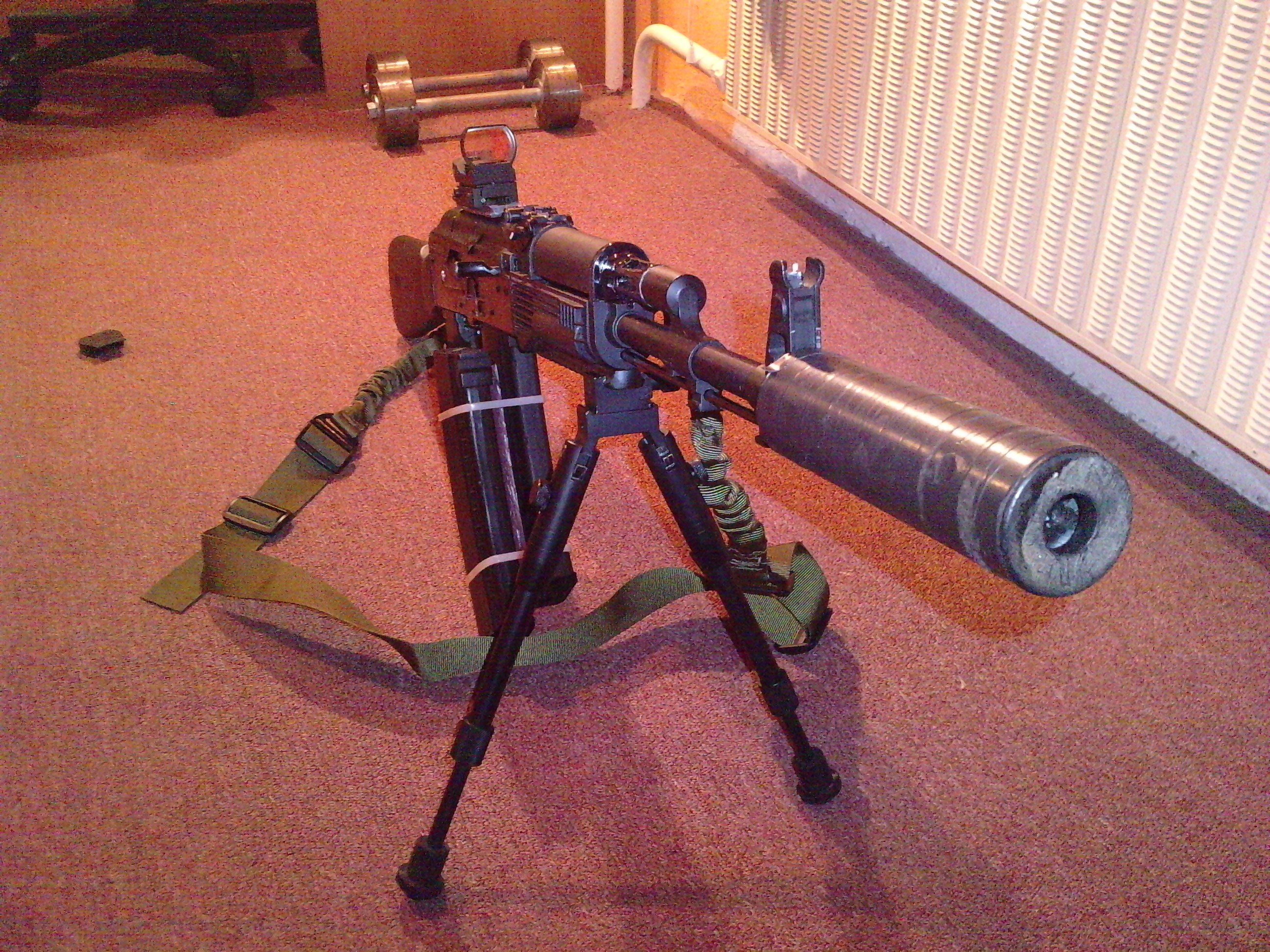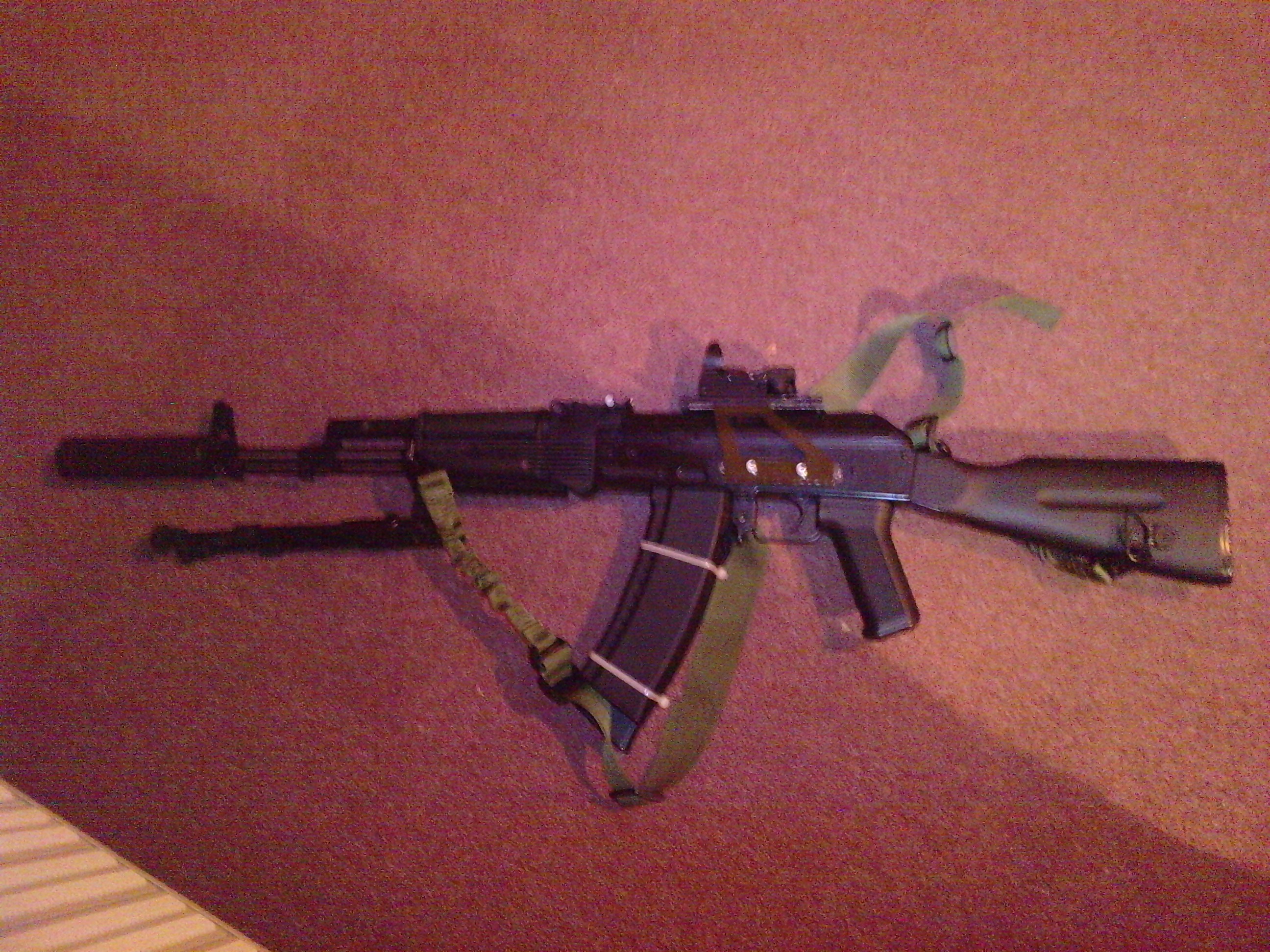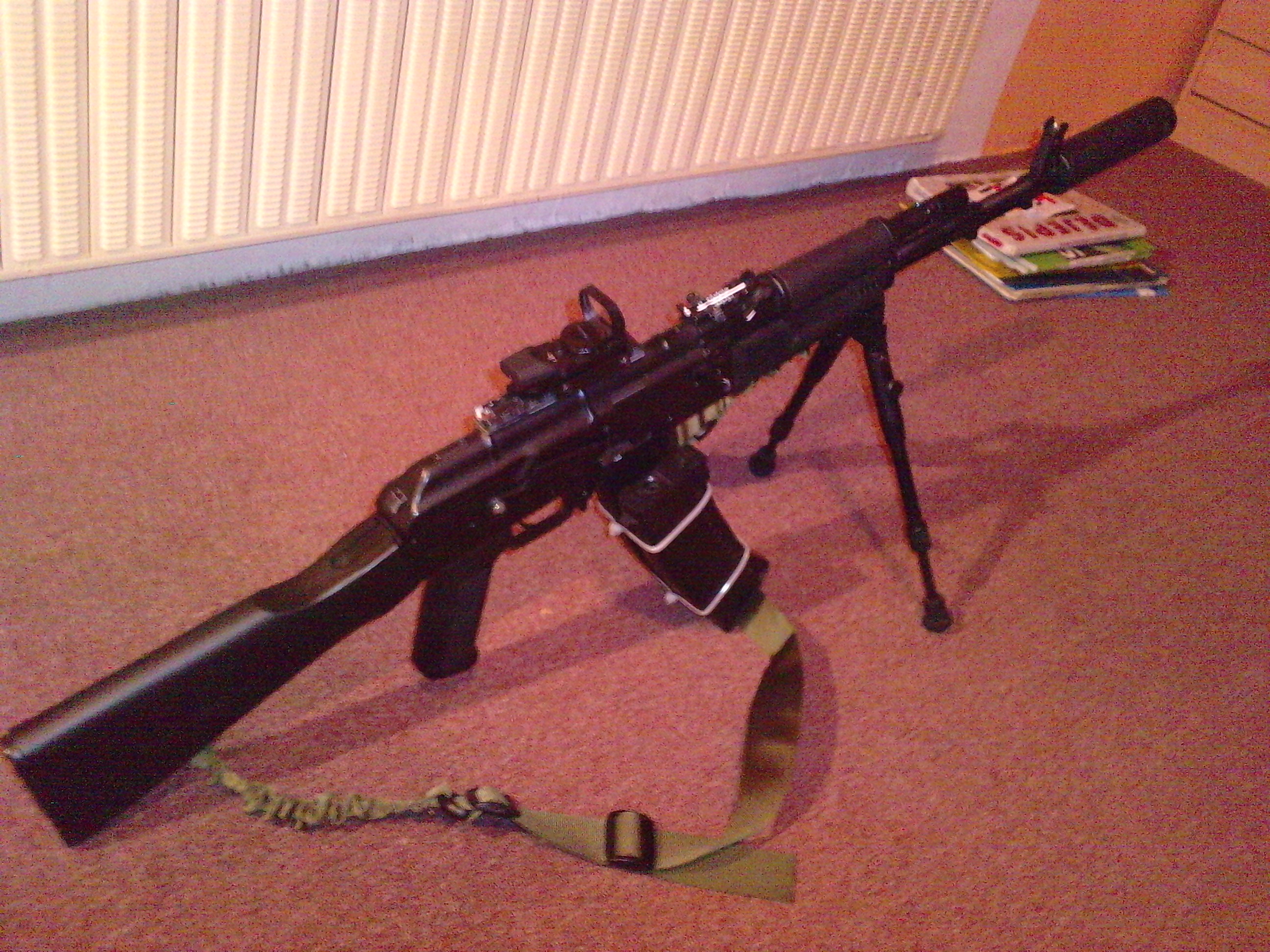 Když už jsem to vyfotil...víceméně finální verze, ještě uvažuju o předpažbí na velikou baterku a jinej pažbě.
