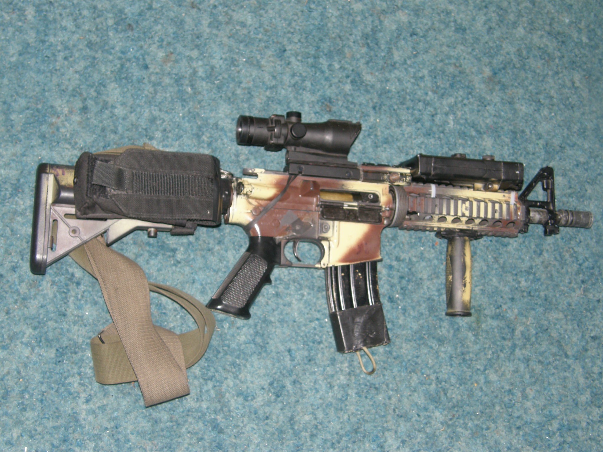 taky prihodim sve kvery. Jde o TW M24, na prvni fotce jeste stara optika od guarderu. Na druhe fotce kopie Leupold Mark IV (vikendu pujde na premalovani  ), strikano barvami krylon. Treti foto je SVD (kupodivu) s original optikou POSP DM6 PRO. Ctvrte foto je trochu upravena M4 RIS. Je tam klasika pazba, takze baterie je v AN/PEQ2. O vikendu jde rovnez do kamuflaze a mozna dostane M203 (to jeste nevim). http://img5.rajce.idnes.cz/d0504/1/1695 ... 010073.JPGhttp://img5.rajce.idnes.cz/d0508/3/3087 ... G_1816.JPGhttp://img5.rajce.idnes.cz/d0507/3/3087 ... G_1841.JPGhttp://img5.rajce.idnes.cz/d0501/1/1648 ... 010004.JPG