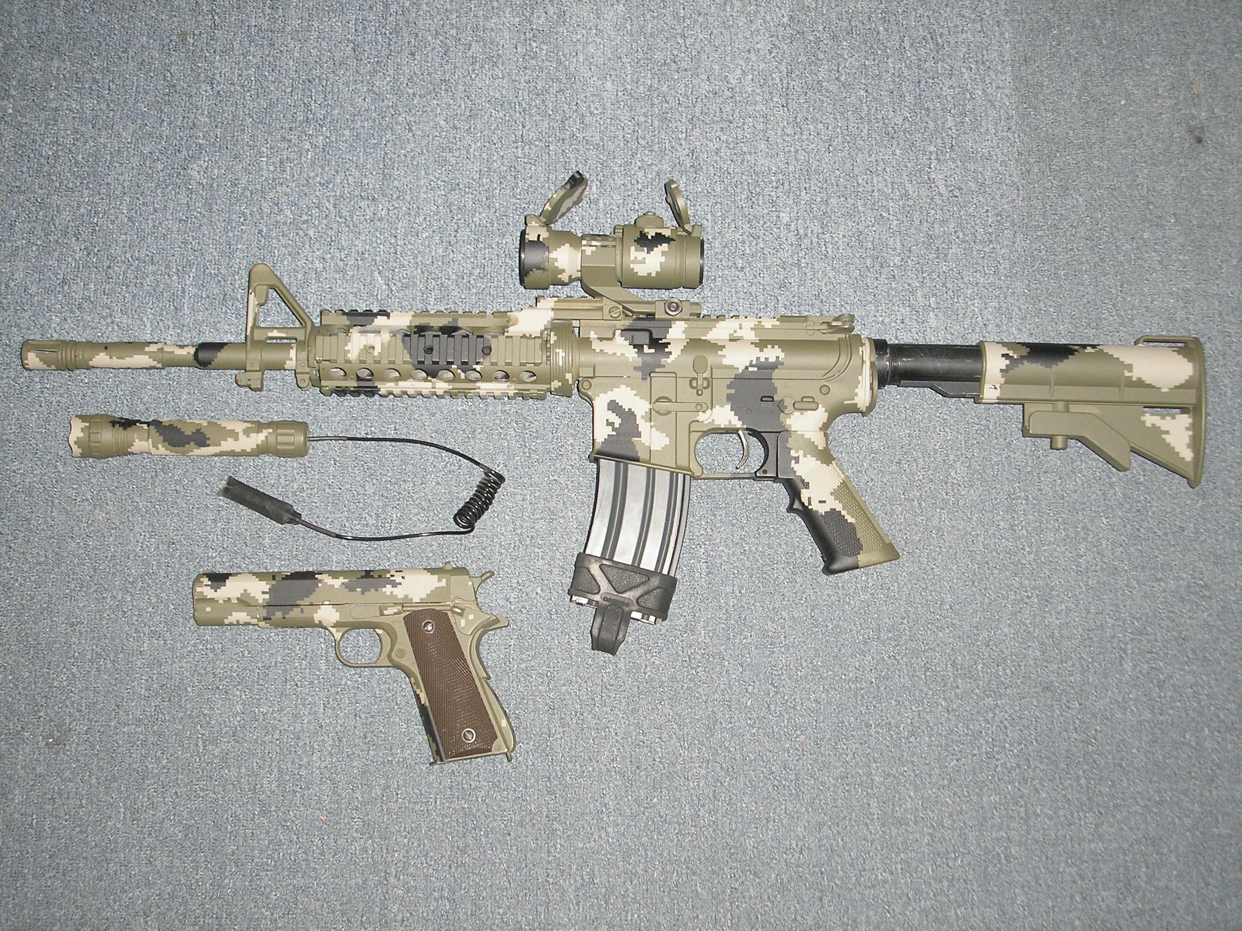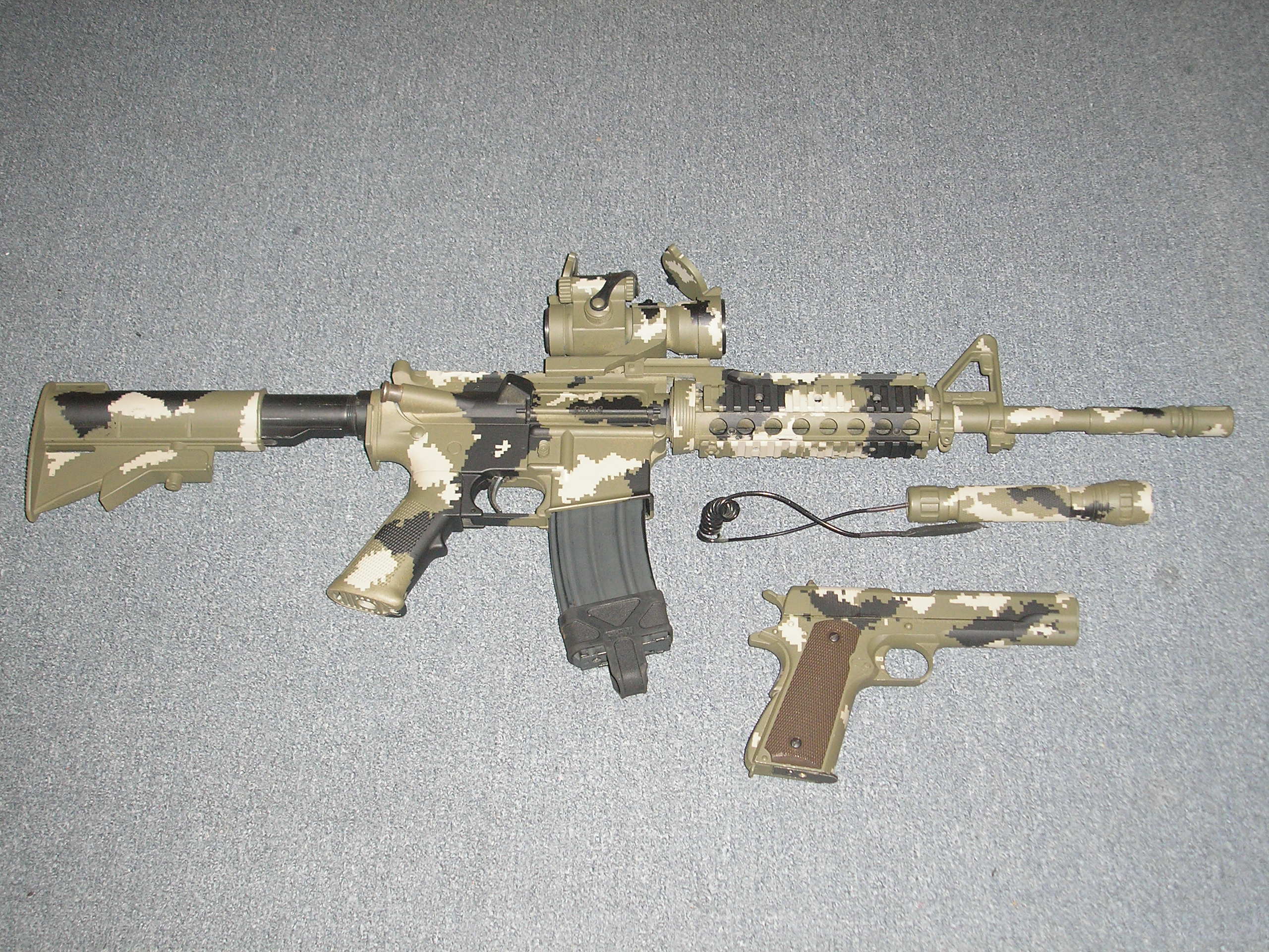 Tak já se taky pochlubim. M4 původně PJ teď už skoro komplet GP, vnitřnosti rozepisovat nebudu a Colt M1911 GBB. Omluvte prosím drobné chyby v nástřiku, je to můj vůbec první.