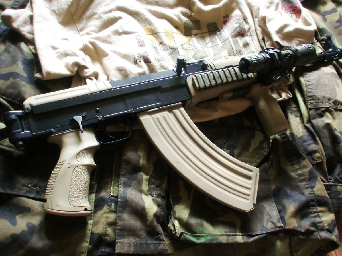 http://www.m1armyshop.cz/detail.php?id_zbozi=1776 Je to krapet levnější než Krylon v ČR, kterej běžně stojí 400kč. Jinak modernstyle by byla kosa v duralu a stříknutá celá. Takhle podobně měli kosy řešený průzkumáci kolem roku 2005 když jim i na misi zakázali to celý postříkat. (ale reenacting to není, aby mě někdo nechytal za slovo, tyhle ručky, ani tu svítilnu tenkrát nikdo tahat nemohl  ).