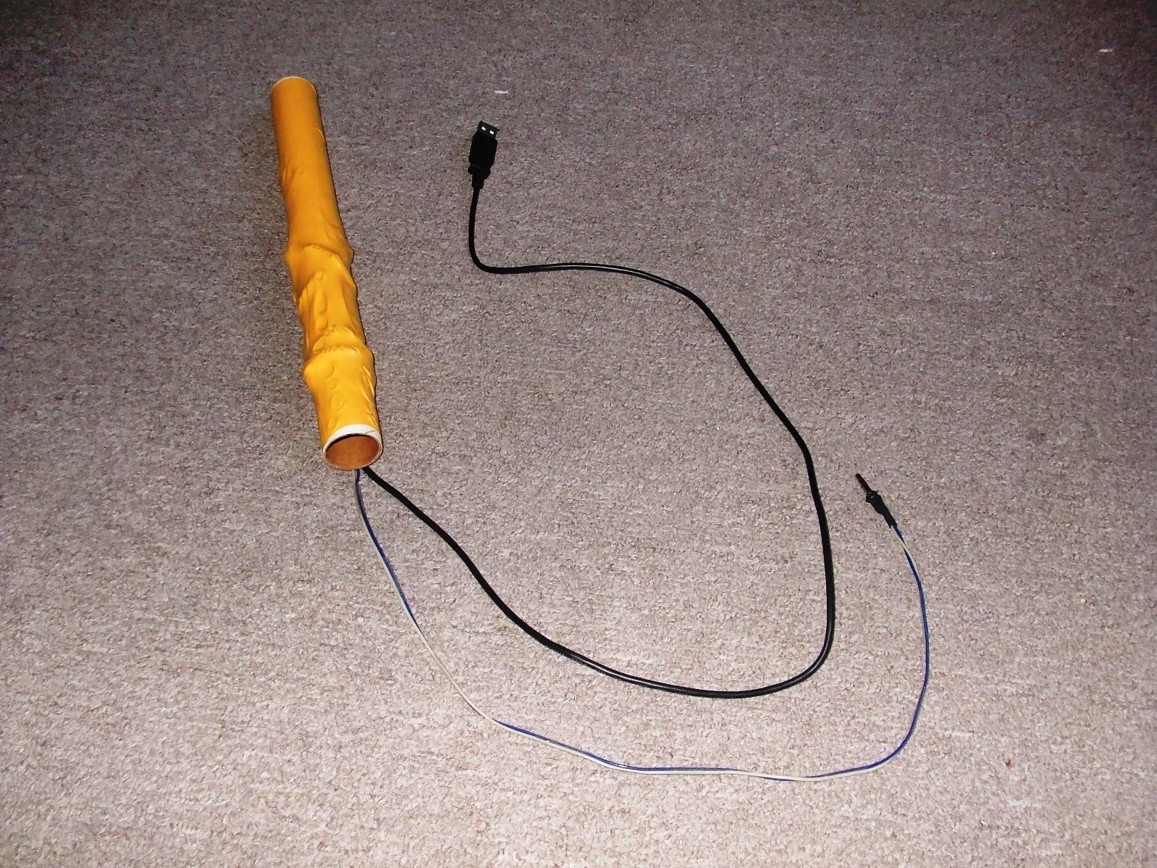 Hotovo. Tak aby jste mi neříkali Velká huba: Kámoš dostal nápad. Sice se to někomu může zvednout rozpočet, ale je to dobrý. Potřebujete k tomu nejlíp 1-2m USB kabel. Na straně, kde se nezasouvá do PC ho "fiknete" a odizolujete jednotlivé dráty. Konkrétně (snad to nepletu, opravte mě, kdyby jo) červenej a černej - ty napojíte na fotodiody podle původního schématu. Pak bílej a zelenej, ty napojíte podle schématu na fototranzistory. Potom následuje druhá část. Kousek od samce USB opatrně odříznout izolaci a přeříznout zelenej a bílej kabel, tu část vedoucí k USB zaizolovat (radši pečlivě, nepřemýšlel jsem, co by se stalo kdyby se spojily...), a ty části vedoucí k diodám napojte podle schématu na jack. Poté vše pečlivě zaizolujte a ve výsledku dostanete dva konektory poblíž sebe - zapojíte do ntb zvuk a napájení a dále máte podle délky kabelu 1-2m "prodlužku" a až poté samotný chrono. Takto můžete mít ntb na stole, zbraň s chronem na posteli a můžete vesele měřit. Tohle je má betaverze a hodlám ji vylepšovat. Zítra, když bude hezké počasí a bude jim fungovat chronometr, budu moci srovnat výsledky. Doufám, že to bude sedět. Diody jsem prozatím narval do trubky od pytlíků na rohlíky, až se dostanu k vrtačce a budu mít čas (snad až za 14 dní) pokusím se dodělat verzi s tyčí od stanu. Doufám, že to bylo pochopitelné, ještě se k tomu vrátím a pokusím se nakreslit schéma a přehlednější postup. Ve výsledku jsem naměřil průměrně ze 6 hodnot 127,5 m/s, což se mi zdá, že tak opravdu je. Uvidíme zítra. Rozptyl byl 3m/s s tím, že poslední 3 měření se shodly na metr přesně. Jen to ude chtít ještě maličko přesnější program, zdá se mi, že jsem to sekal ještě trochu zhruba a taky mám trochu jinej průběh, takovej kulatější, ale to se mi zdá, že je právě dobře ne?