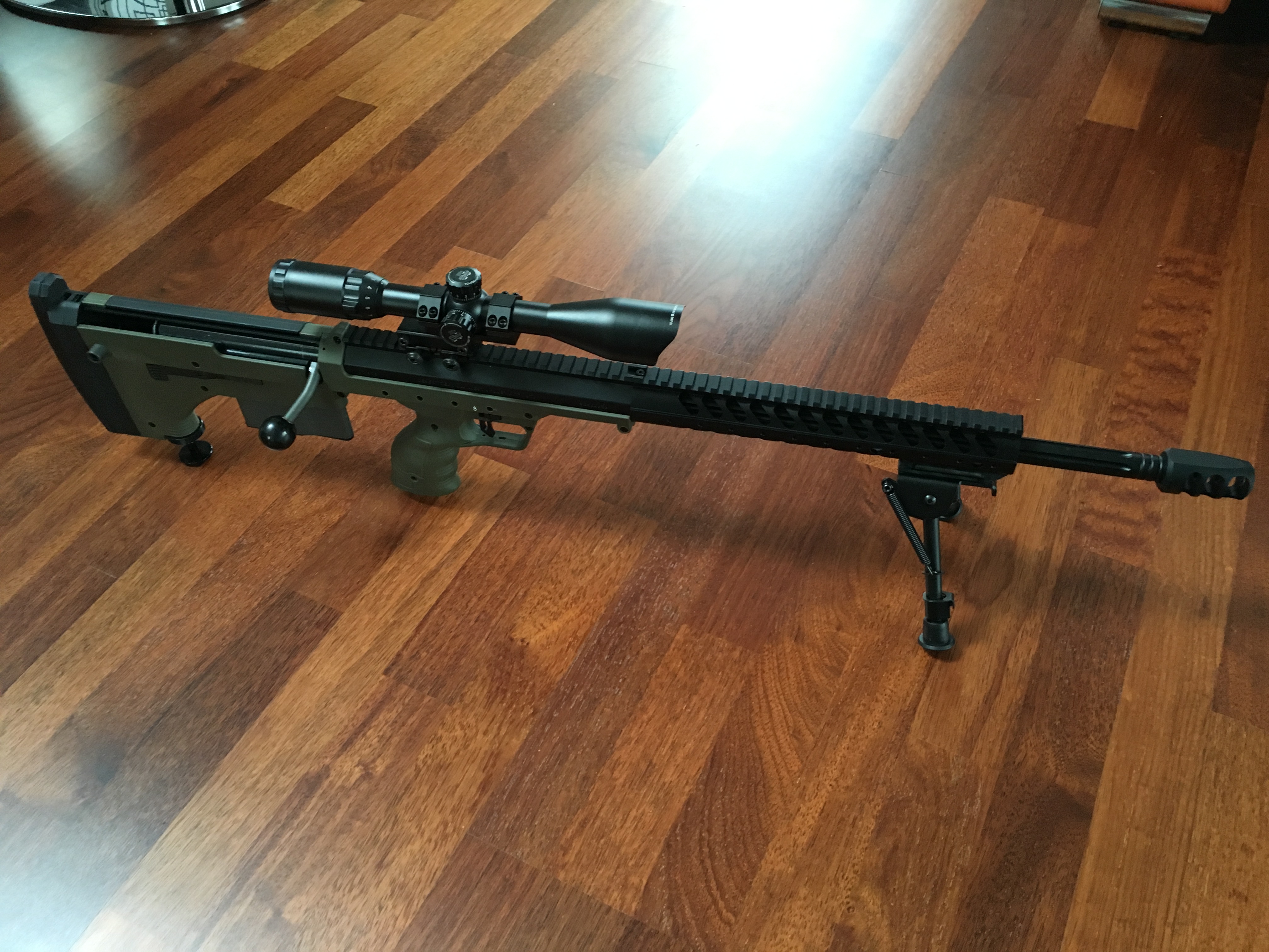 Cena za kterou jsem to vše koupil - 30 200 (zbraň - 13500, optika 3000, hlaveň 2000, dvojnožka 1200, zásobník 700, pružina 600, montáž optiky 500, hop up gumičky 300+200, doprava 4000, clo a DPH 4200).