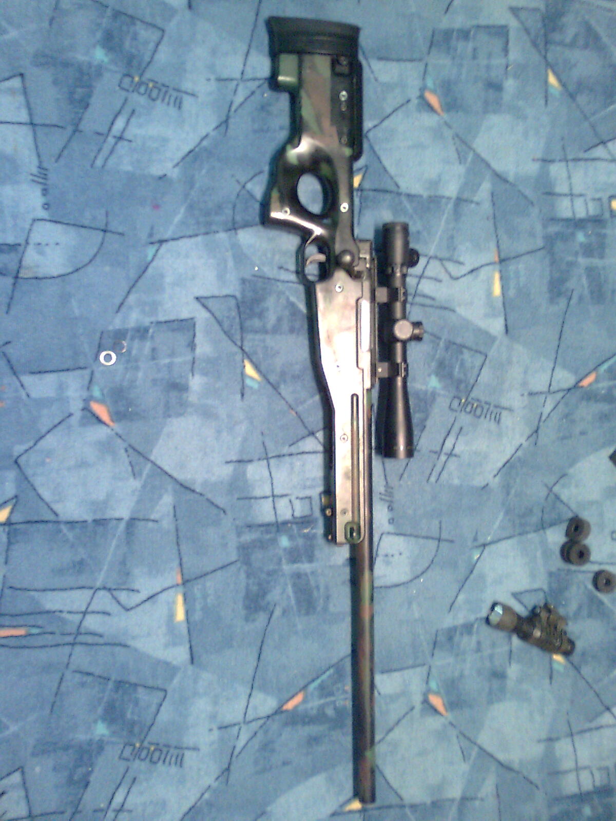 Bráchova puška. Je blázen do velkorážnejch pušek. Sniper rifle MK 15 mod 0. (McMillan TAC-50) Vnitřnosti z APS-2, vevnitř 380% set. Pažbení plech 2 mm. Váha cca 6 kg.