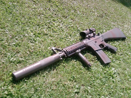 Moje momentální primárka je jaksi sprzněná JG M733. Zásobníky: 300BB, 30BB, 190BB, 3x 130BB Příslušenství: XCell 8.4/1500, SANYO 8.4/1700, 2 bodovej popruh Vnitřek  Komplet vyměněnej za vnitřek z JG M4A1 kromě pístu a hlavy válce (byly zde lepší), pružina M110, SRC motor, systema guma,... Plánovaný upgrade: Kably s mosfetem, Hlava pístu POM
