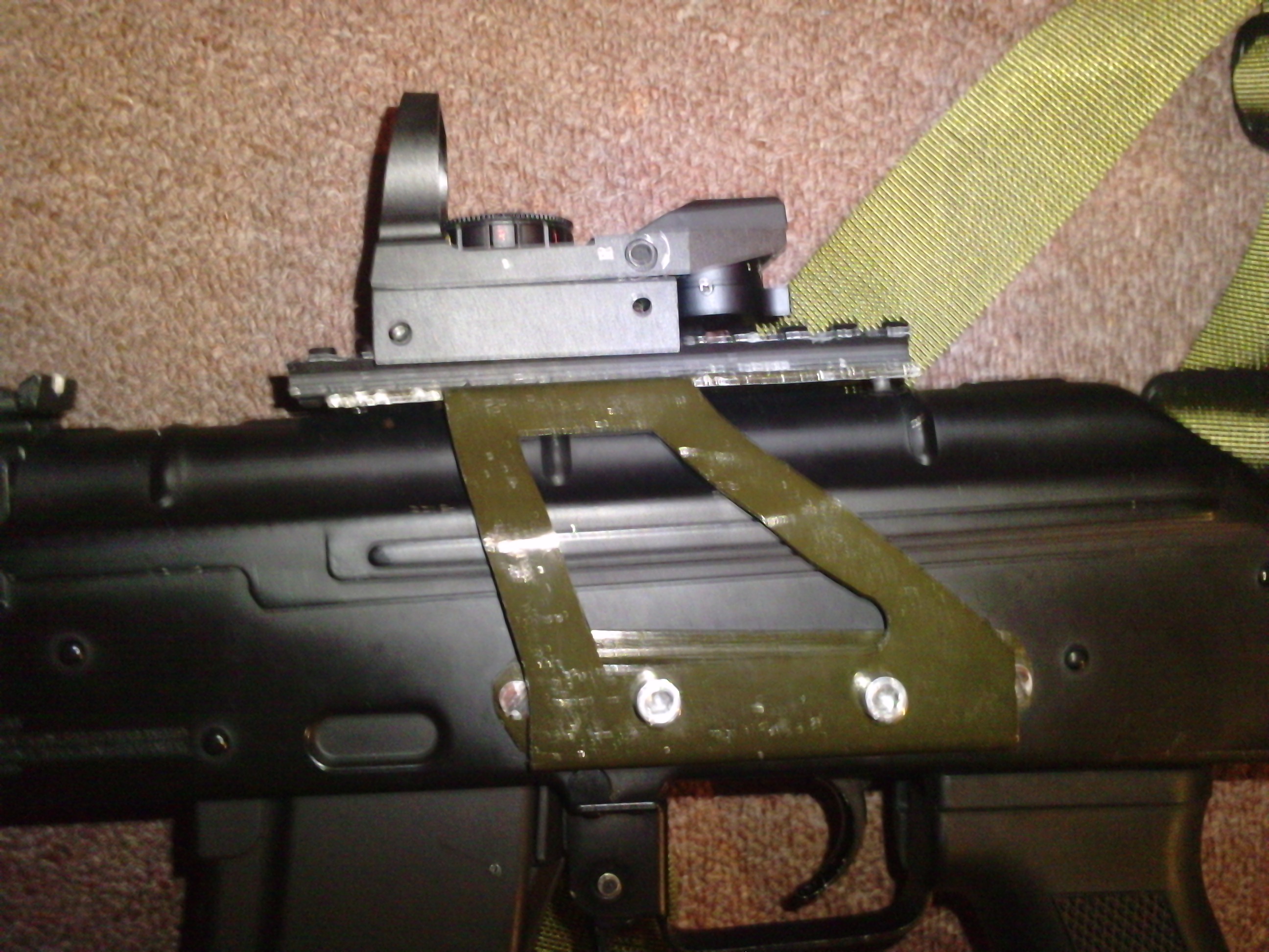 Když už jsem to vyfotil...víceméně finální verze, ještě uvažuju o předpažbí na velikou baterku a jinej pažbě.
