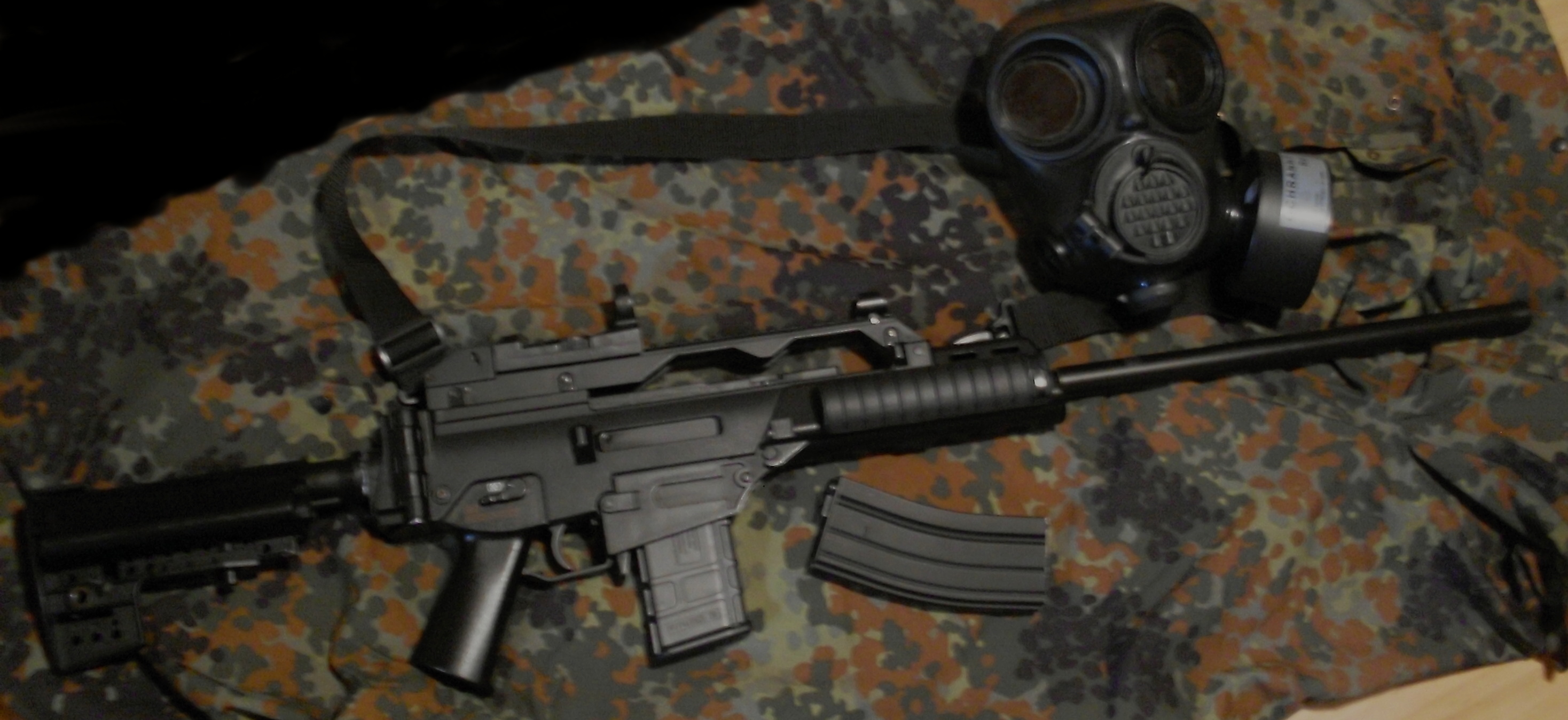 Když už jsem to vyfotil...víceméně finální verze, ještě uvažuju o předpažbí na velikou baterku a jinej pažbě.