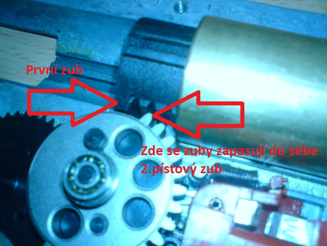 Zdravím, nedávno jsem si koupil kola od src se šikmým ozubením a karbonový píst guru s jedním ocelákem a při kompletním vypodložkování kol jsem tam vrazil i vzduchotechniku, a při protočení koly se objevil zásadní problém že první zub pístového kola se zachytává až za druhý zub pístu... Proto bych řekl že by se mohlo stát že při dávce by mi mohlo to pístové kolo sebrat zuby na pístu. Dále tímto problémem vzniká další problém  a to takový že při úplném natažení pístu zbude poslední zub pístového kola nevyužit, a při výstřelu by se podle mě mohl tento zub ulomit...Takže se vás ptám co by ste v takové situaci udělali vy?? Napadlo mě jediné a to 2. zub na pístu upilovat tudíž by vznikla i ochrana proti předušení. Ale zase se mi nechce rovnou nový píst pilovat.Proto budu vděčný za každou radu. Pro upřesnění jsem vložil 2 fota... omlouvám se za kvalitu