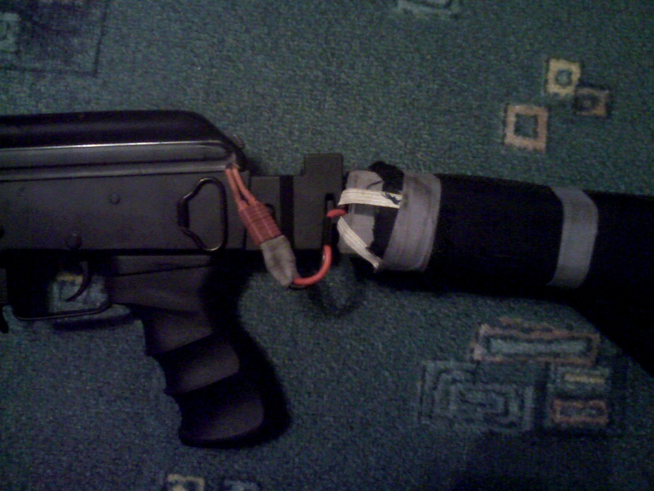 Resim problem se kterym by jsem potreboval poradit. U meho AK47U mam baterku v kapsicce na pazbe a nevim kudy mam vest kabely aby se moc nepletli a nejak se nepozkozovali. Zatim to mam vyreseny hodne na prd tak by jsem potreboval poradit. Jak to mam ted tak je to fakt neprakticky.