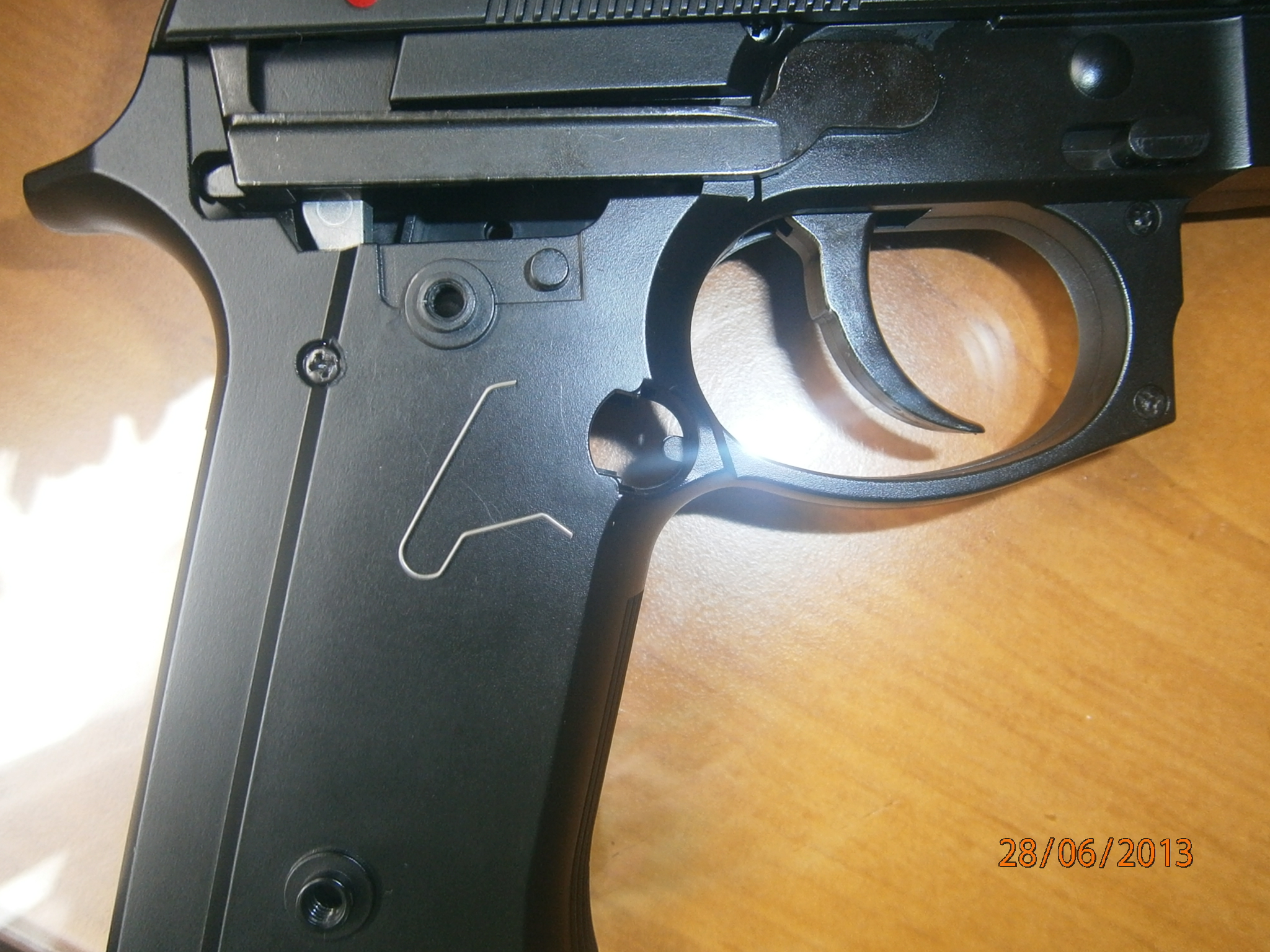 Troufnu si odhadnout, že je to "pružinka" táhla kohoutku, to je u M92 častej problém. Na nákresu od m.ape se jedná o díl 65, jeden konec má zapadnout do drážky na spodní hraně táhla (díl 64), druhej se zapírá o výstupek na rámu a celý to drží na místě díky pravej střence, kterou se to "přiklopí". Instalace záchytu zásobníku je myslim vcelku očividná, prostě ho musíš do rámu z jedný strany nacpat a správně umístit pružinku, nevim jak to líp vysvětlit, ale stopro na to přijdeš sám.
